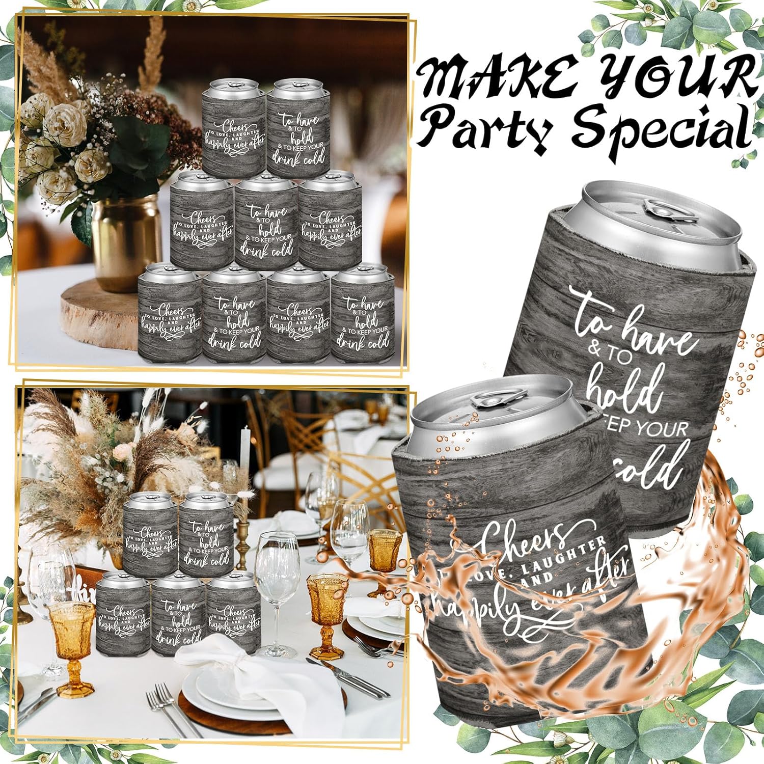 • Satisfying Party Package: our huge package containing 50 pieces of wedding can cooler decorations; Make every drink a celebration with our gray and white can coolers; They are suited to uplift the atmosphere at weddings, bridal showers, and bachelorette parties