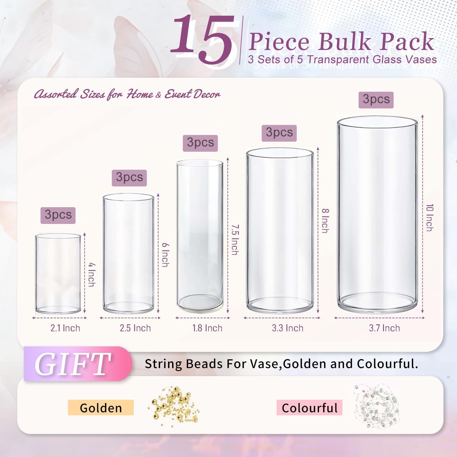 15pcs Glass Vase Cylinder Vases for Centerpieces Small Flower Glass Vases Home Decor Centerpiece Table Clear Flower Vase Decorations for Wedding&Holiday 4,6,7.5,8,10 Inch Tall
