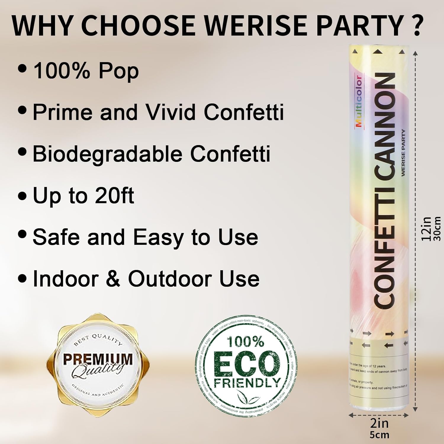 Biodegradable Confetti Poppers Cannon, 6 Pack WERISE Party Multicolor Party Poppers Confetti Shooters for Birthday, Wedding, Graduation Celebration New Year 12 Inch