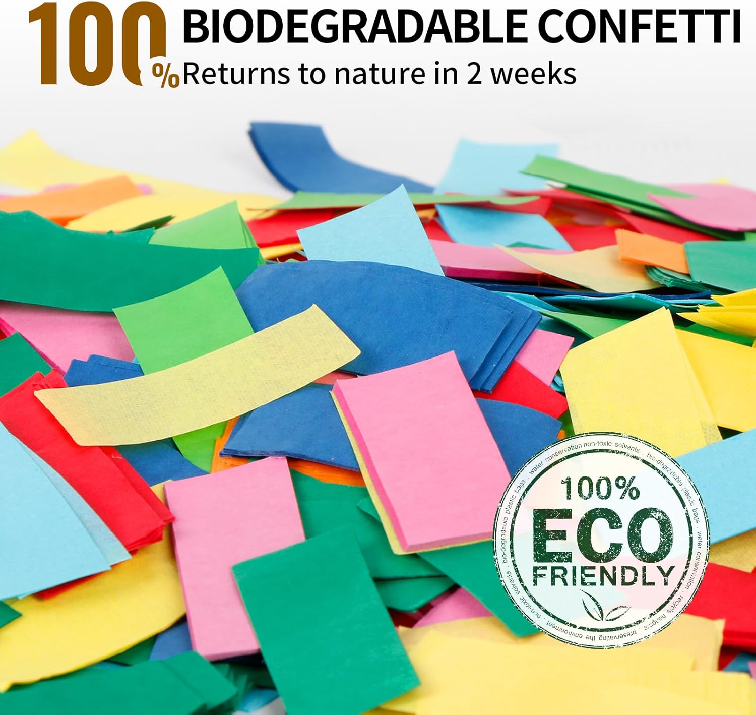 • γ€π„π‚πŽ-π…π‘πˆπ„ππƒπ‹π˜ & ππˆπŽπƒπ„π†π‘π€πƒπ€ππ‹π„ π‚πŽππ…π„π“π“πˆγ€‘The confetti poppers packed with biodegradable, flame-retardant confetti that vanishes outdoors within 2 weeksβ€”gentle on kids, venues and the environment