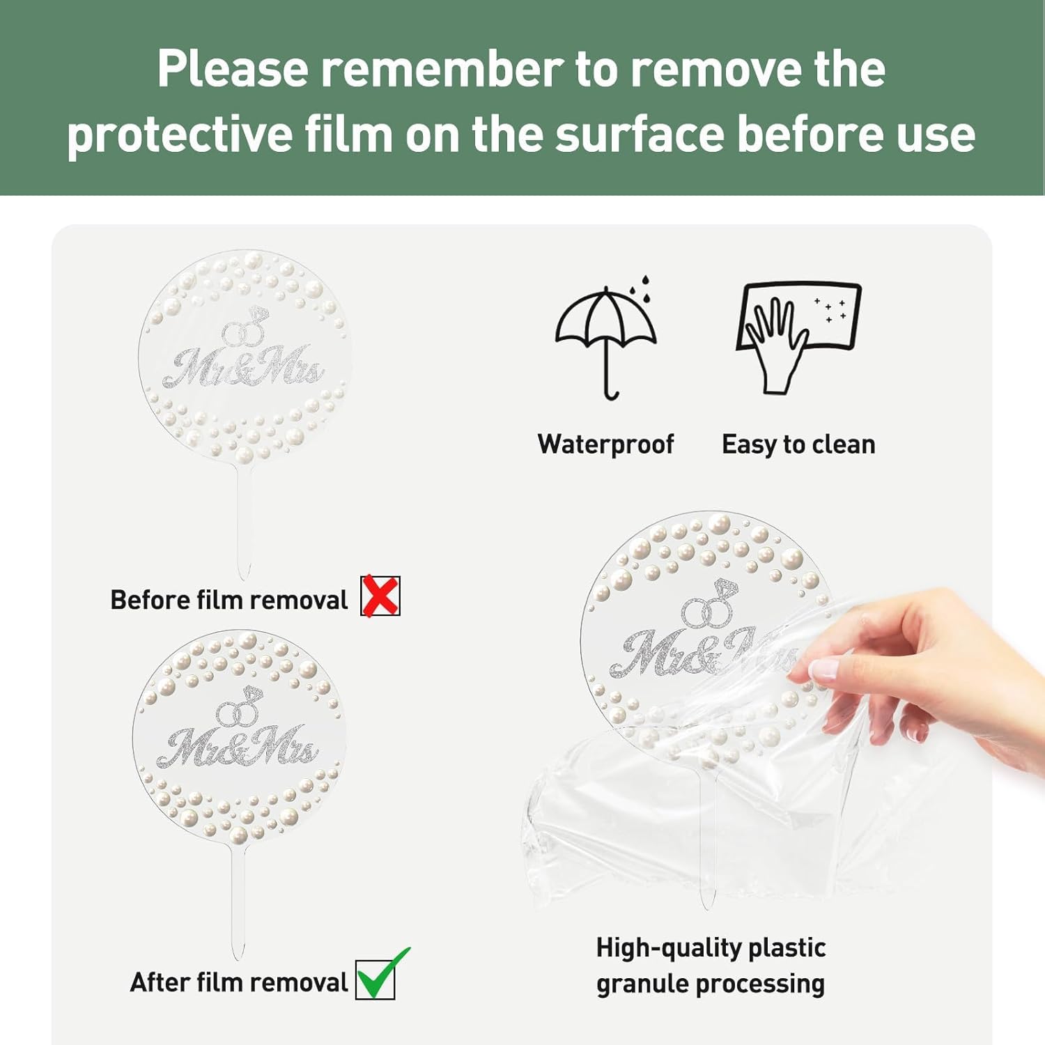 • 【Stable Base & Easy Maintenance】: Features a flat, non-slip base that securely attaches to cakes without damaging surfaces. The waterproof and dust-resistant design allows simple cleaning with a damp cloth, ideal for "mr and mrs sign" displays.