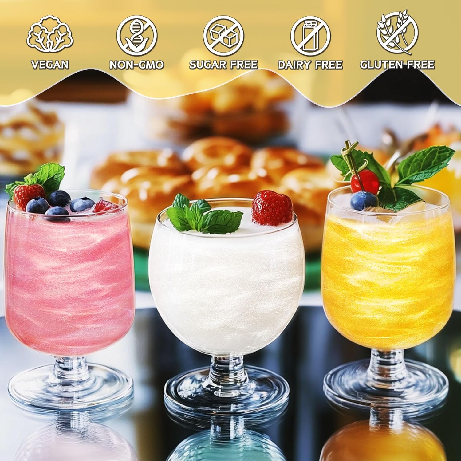 • SAFE AND HIGH-QUALITY INGREDIENTS - Our glitter for drinks is made from 100% edible materials, vegan, non-GMO, unflavored, sugar-free, dairy-free, and gluten-free, ensuring that everyone can enjoy our edible drink glitter safely.