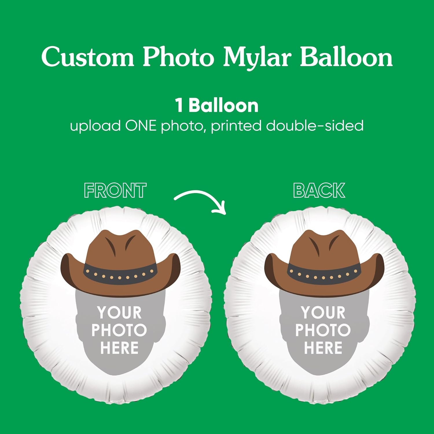 • Special Feature : Personalized Photo, Cowboy Hat Design, Mylar Material, Easy Inflation Straw