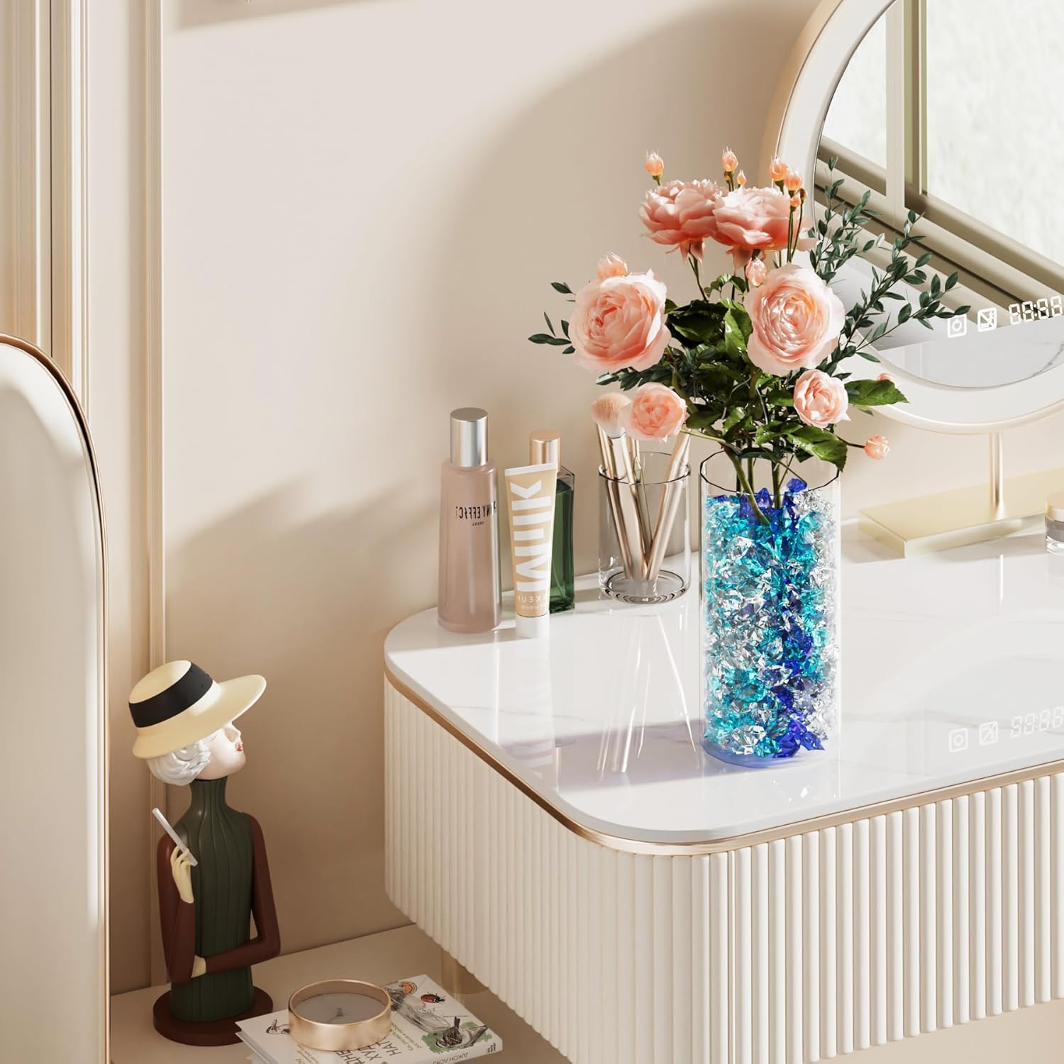 Acrylic Crushed Ice Rocks, Babenest 150 PCS Fake Crystals Plastic Ice Cubes Diamonds Gems for Vase Fillers, Home Decoration, Table Scatter, Event, Wedding, Arts & Crafts (Clear/Rpyal Blue/Baby Blue)