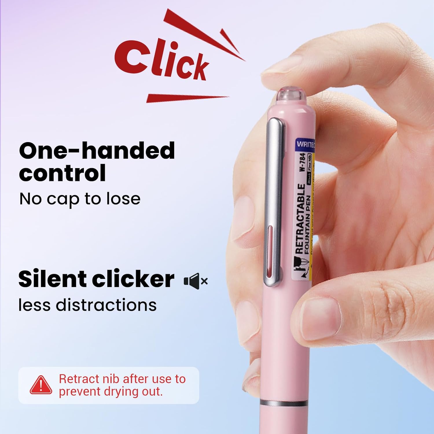 WRITECH Retractable Fountain Pen Set: Black Ink Fine Nib, 5 Refillable Ink Cartridges Included, No Leaking Smooth Writing for Calligraphy Journaling Gift (Pink)