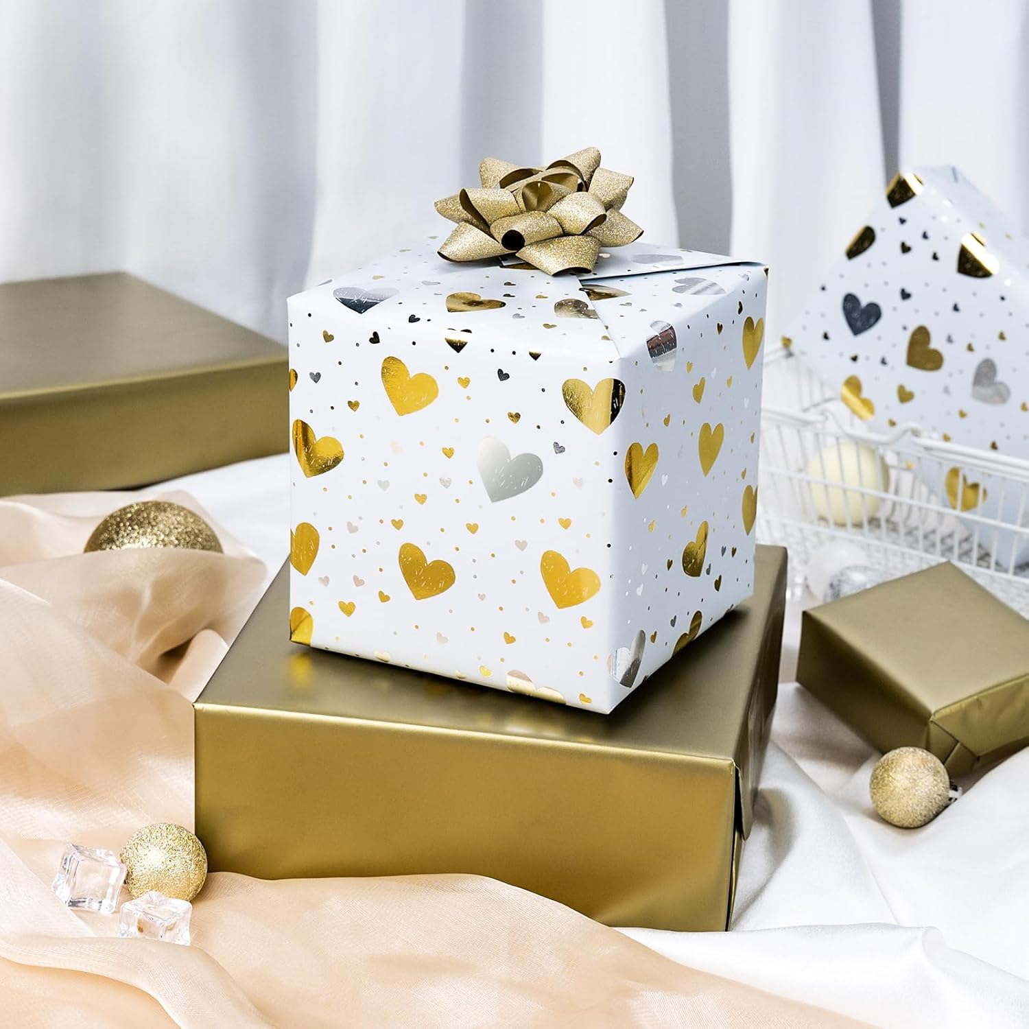 • Double-Sided Wrapping Paper: One side features gold and silver hearts, while the other is solid gold, making your gift wrap unique and eye-catching