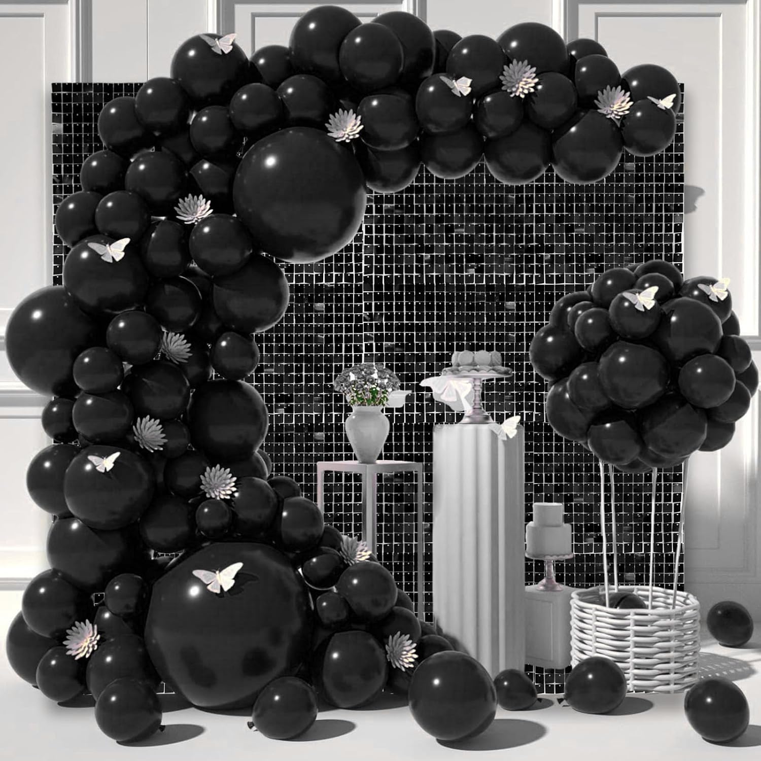 • 【Shimmer Wall Backdrops】The sequins of the black glitter wall panels will move with the wind and sparkle when the light hits them. You can match it with any balloon, wall, outdoor or indoor backdrop to a fantastic shiny photo backdrop, creating a nice shiny atmosphere for your party.