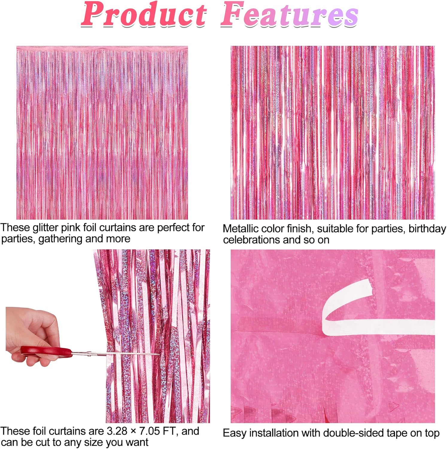 • Material: These pink foil curtains are made of 23 ΞΌm PET material, which is tear-resistant and colorfast, suitable for your birthday photo booth props.