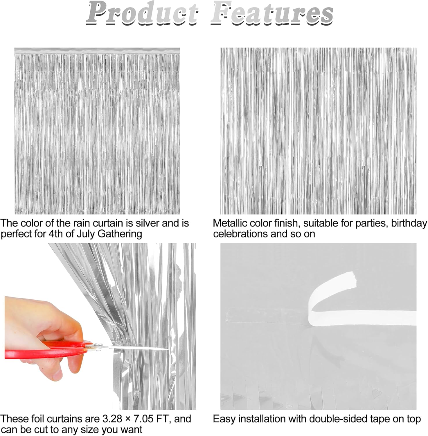 • Design: Each silver curtains features a sleek silver color with a reflective metallic surface, adding a touch of elegance and shine to your decor, suitable for your photo booth props.