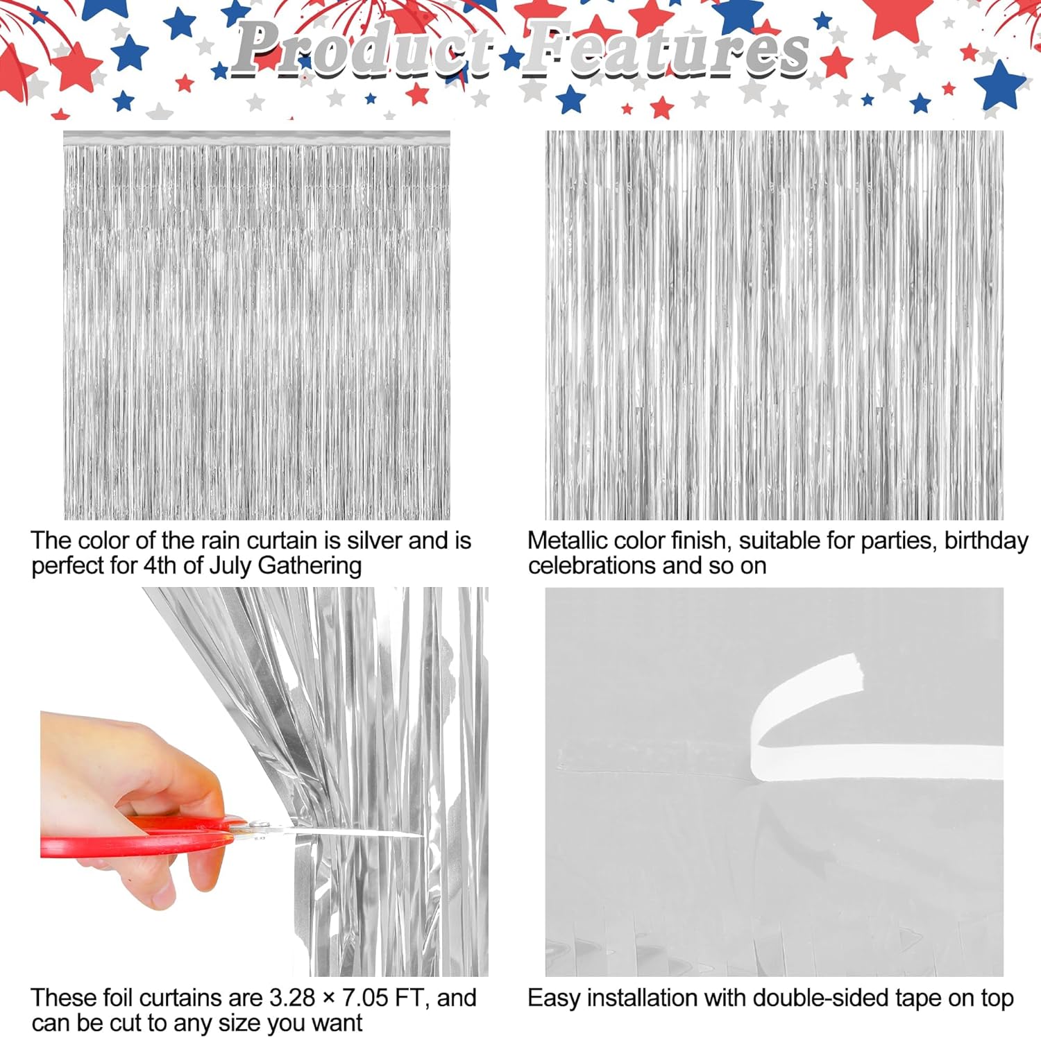 • Use Occasions: Suitable for a variety of celebrations including Independence Day, parties, birthdays, and other festive events, the silver tinsel backdrop is suitable for adding a glamorous touch to any occasion.