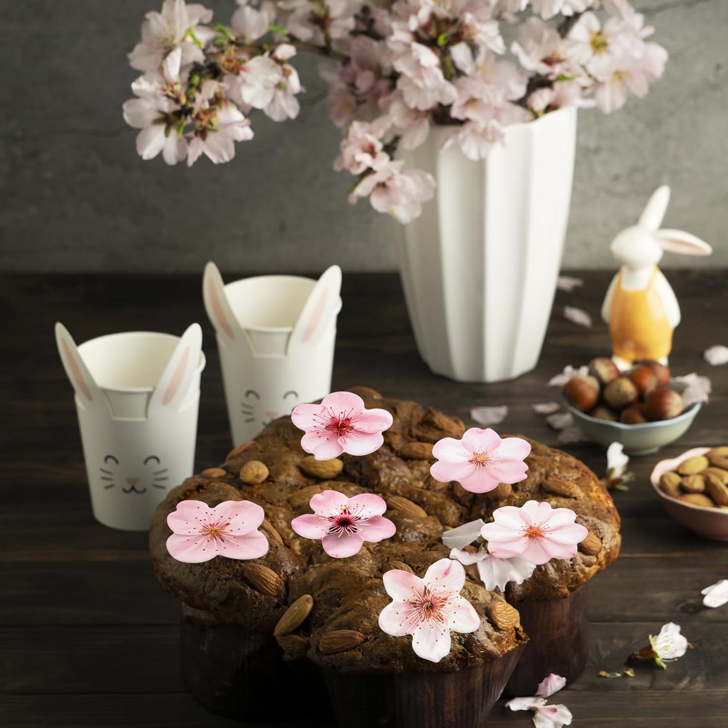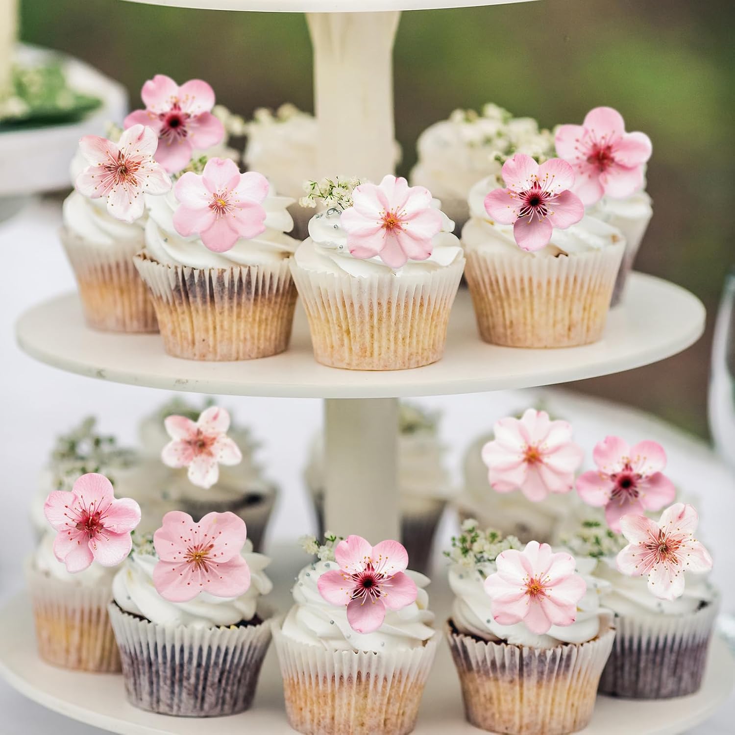 70PCS Edible Cherry Blossoms Cupcake Toppers Pink Edible Cherry Flowers Cake Decorations Wafer Paper Flowers Cupcake Topper for Flowers Theme Baby Shower Birthday Party Decor Supplies