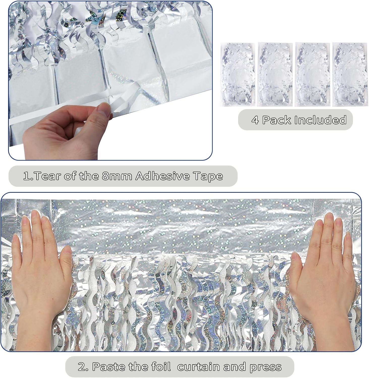 • Easy to Use: The silver foil curtain backdrop has double-sided tape on the top of the back,please peel tape off would be very easy to paste on smooth surfaces such as wall,window,table,door or anywhere you like