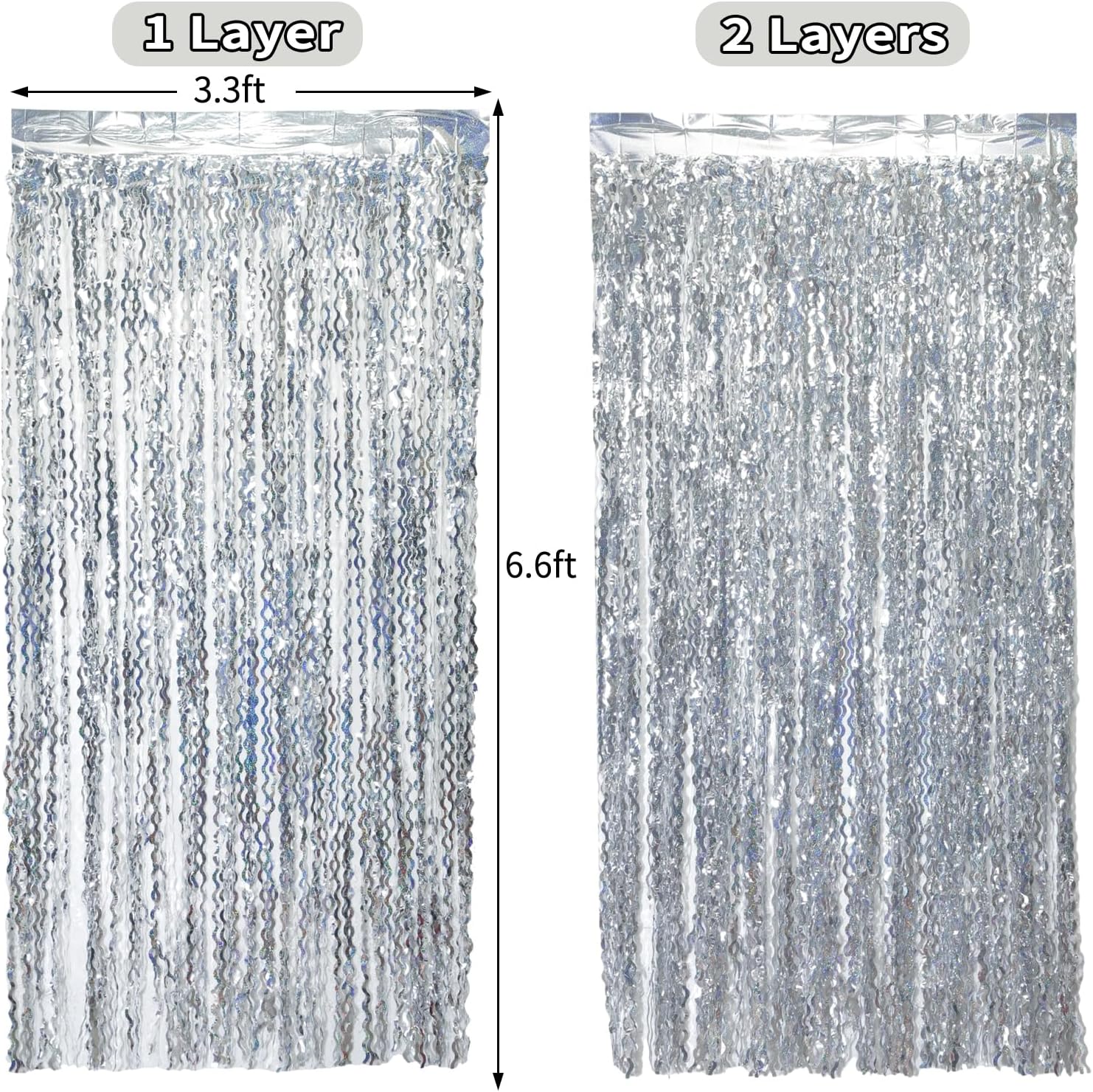 • Package Contents: 4 pack silver wavy foil fringe curtains,each curtain is 3.3ft x6.6ft,You can cut the metallic backdrop into the suitable length for use,Wonderful accessories for decorating doors and walls