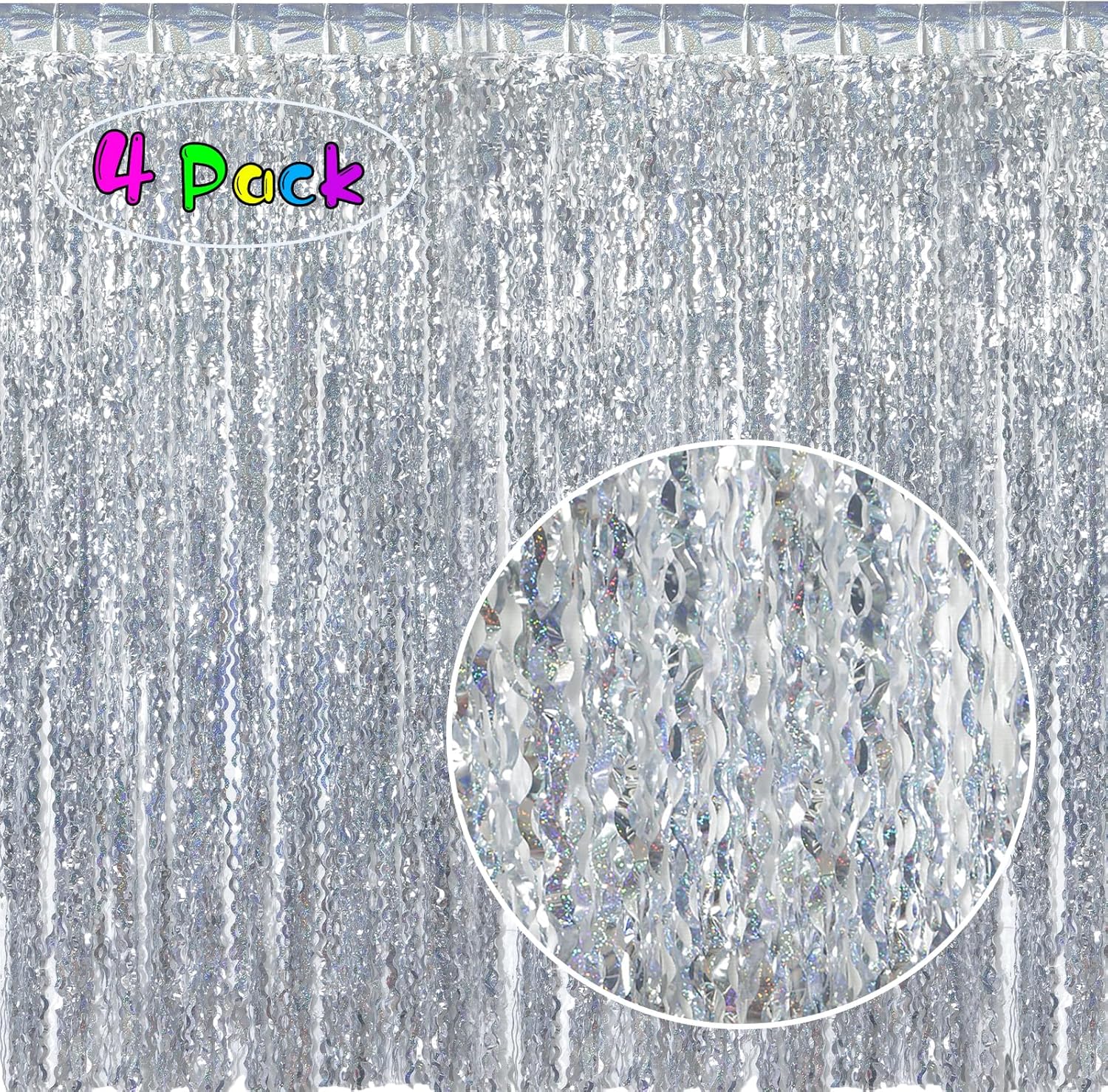4 Pack 3.3 ft x 6.6 ft Silver Metallic Tinsel Foil Fringe Curtains - Door Streamers for Photo Booth Christmas Day Thanksgiving Wedding New Year Party Decorations