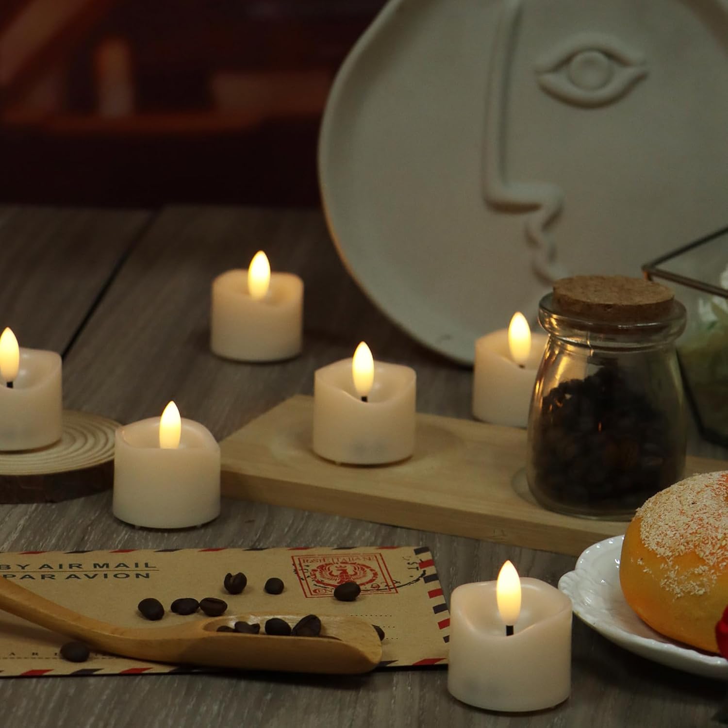 • Realistic Candles: They are battery operated fake tea light candles with black wick, these votive light look like and flicker like real candles. The flameless LED tealight candles create a warm and romantic atmosphere when they flicker.