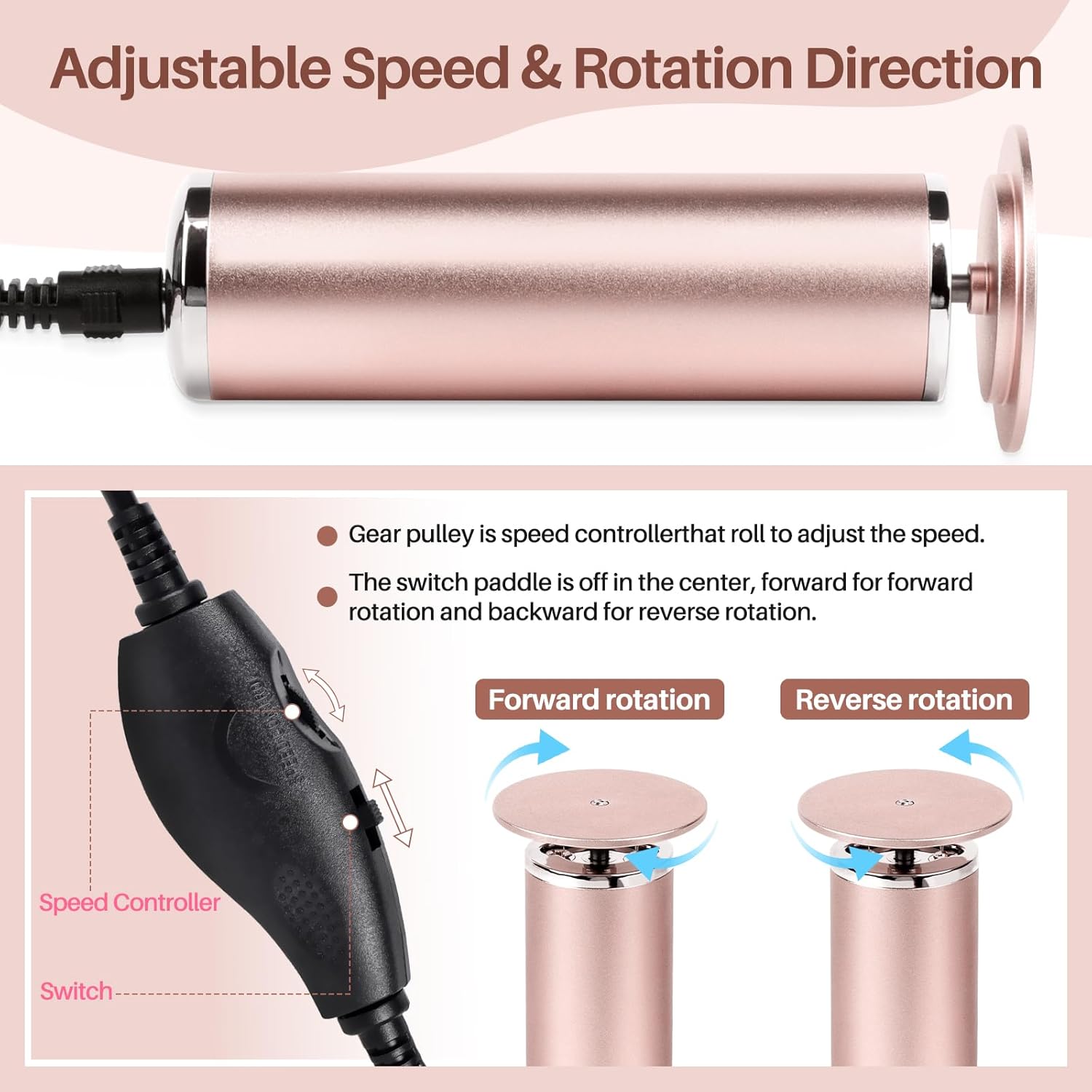 • 【Electric Foot File Remover Callus】360-Degree Rotation Professional-grade electric foot care tool with Adjustable speed and sanding rotation direction of dead skin and calluses, suitable for both right and left-handed use.delivering salon-level pedicure results at home/Salon/Spa Use.
