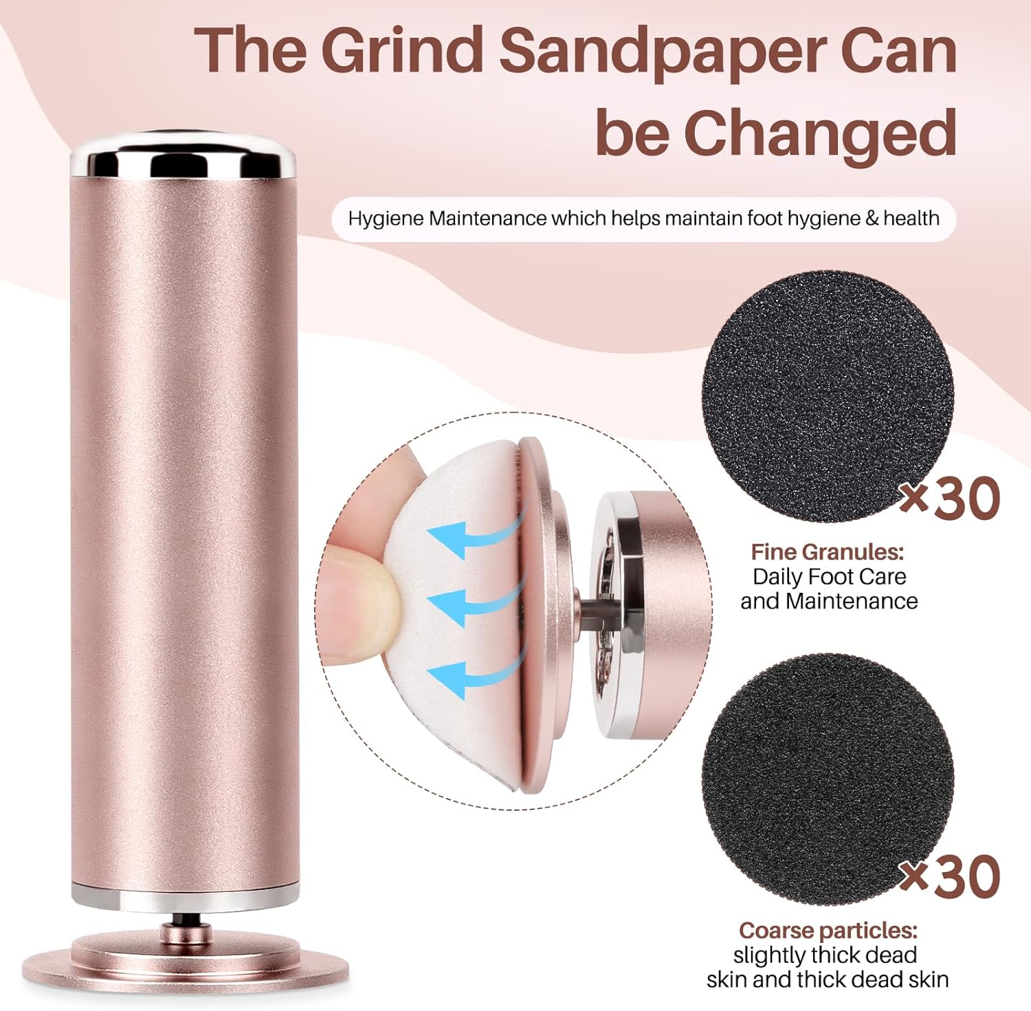 Electric Foot File Remover Callus: Profesional Pedicure Tool for Callus Remover - Adjustable Speed Feet File Grinder with 60 Pcs Replacement Sandpaper Disk for Skin and Calluses(Gold)