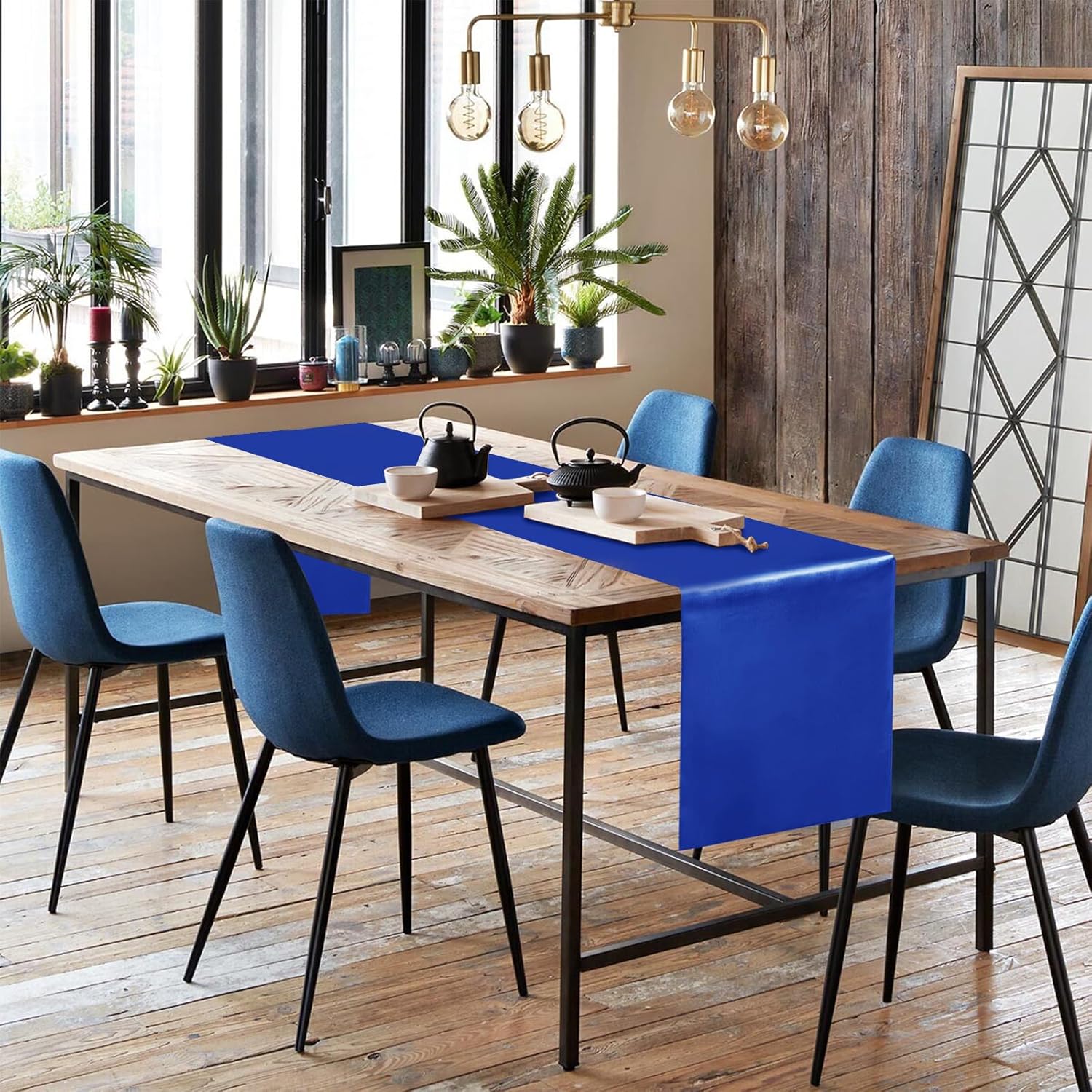 10 Pack Satin Table Runner 12 x 108 Inch Long Royal Blue Silk Table Runner for Wedding Party Banquet Birthday Decoration