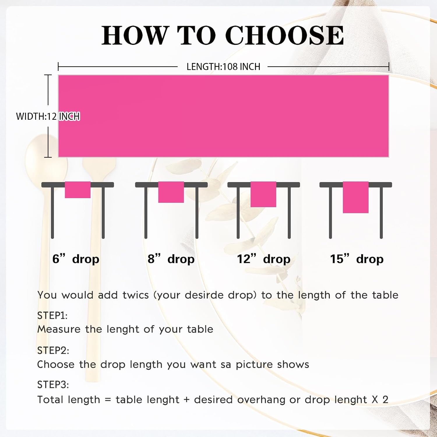 • Package Include: Each fuchsia satin table runner measures 12" x 108", total 10 packs, which is appropriate for rectangle or round tables that can seat 8-10 people.