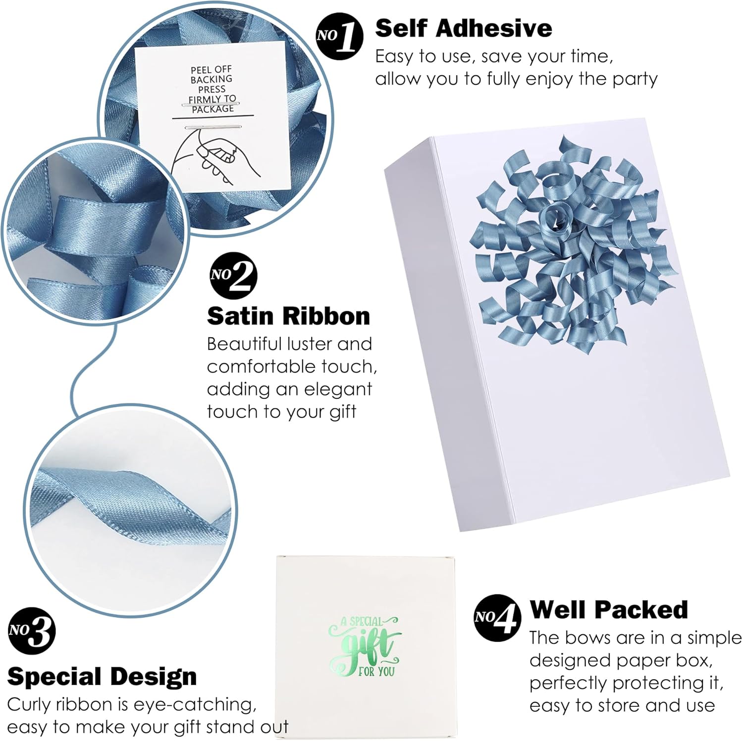 • Value Package: You will receive 8 pieces of satin gift wrap bows in the package, satisfying your daily decoration needs. After wrapping your gift, sticking the premade bows to a gift is a unique finishing touch that makes your package more sophisticated.