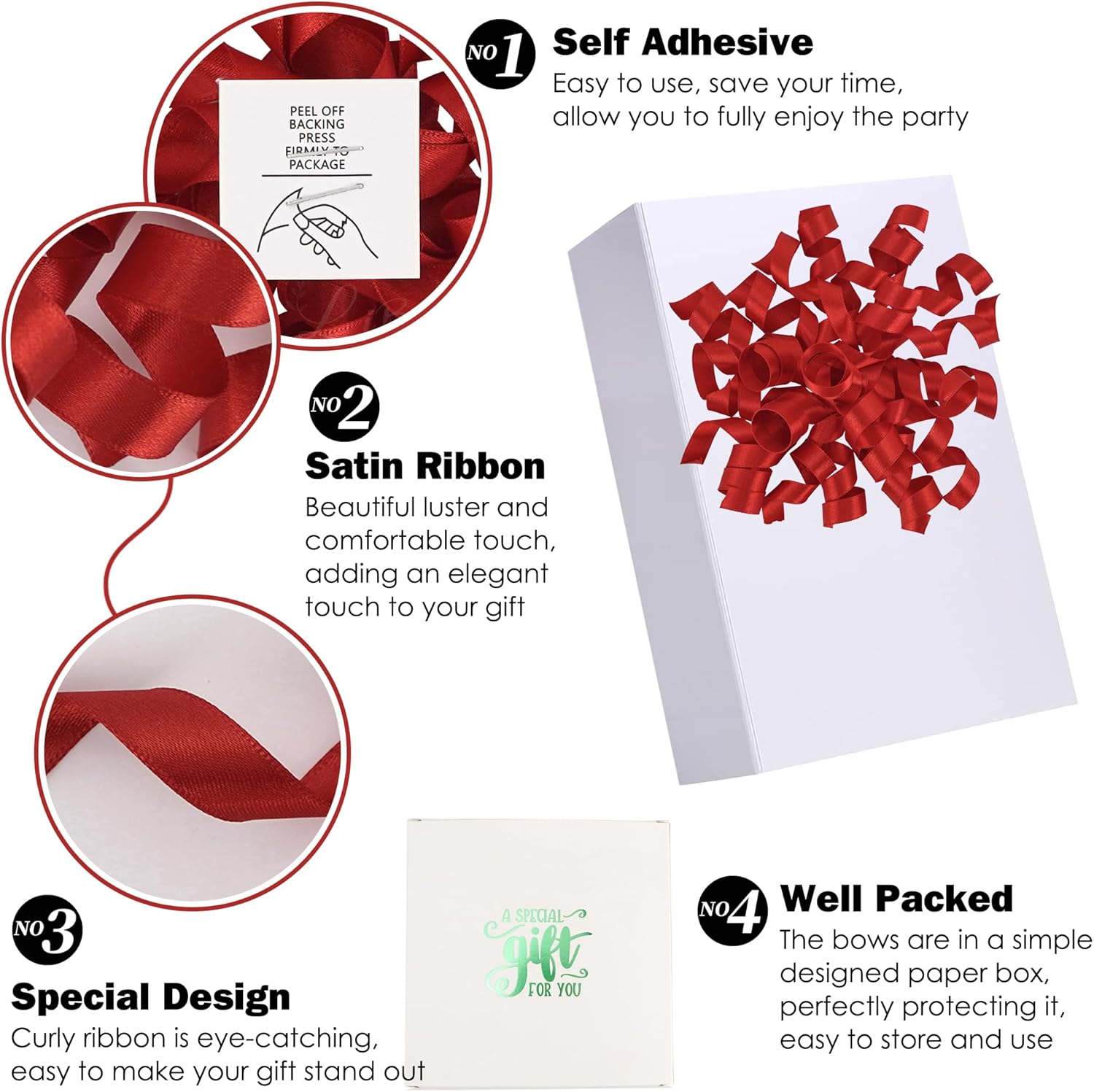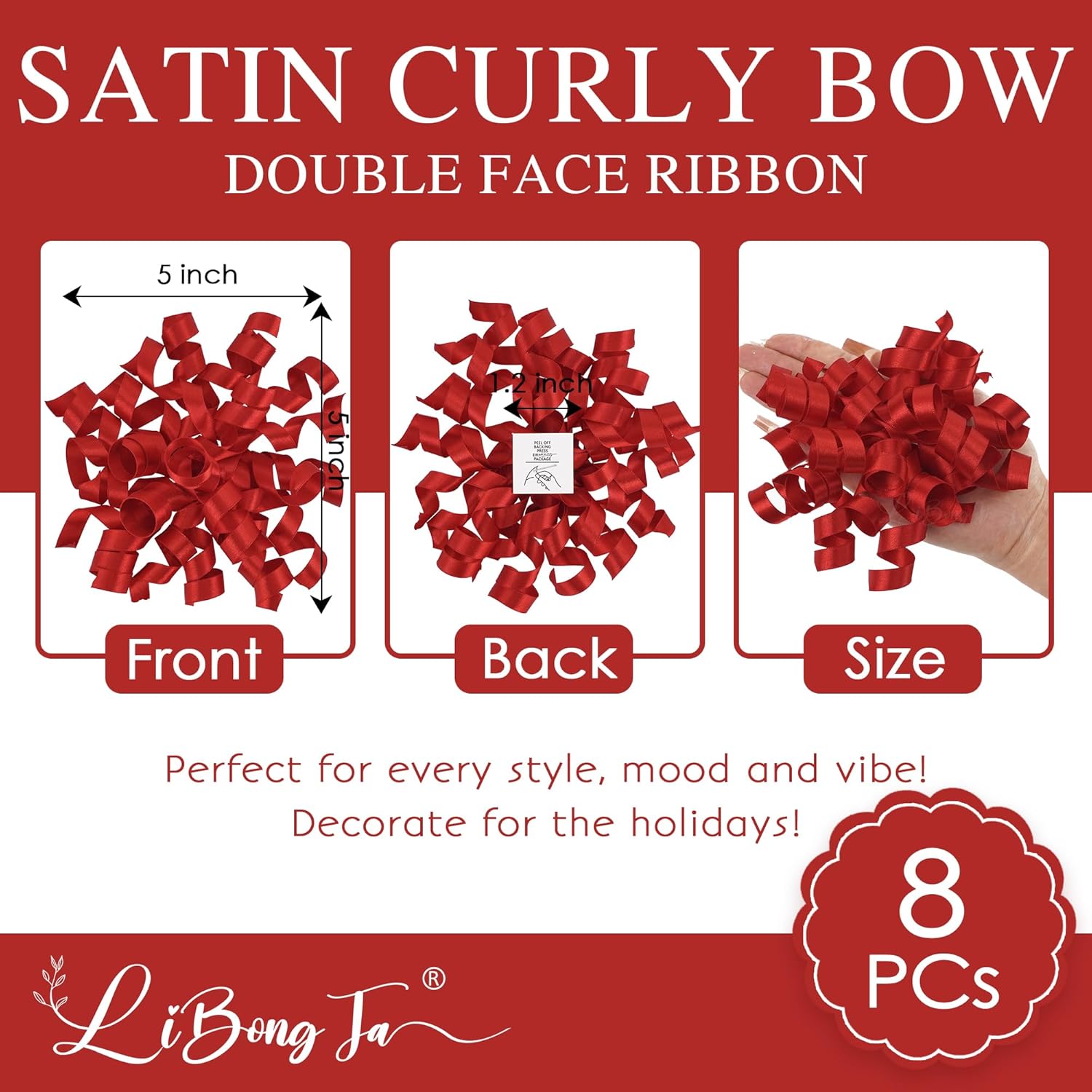 5 Inch Red Bows Curly Ribbon Bows for Gift Wrapping, Satin Bows with Double-Sided Tape, Self Adhesive Bows for Party, Wedding, Birthday Decor, Premade Bows for Crafts, Wine Glasses-8 Counts