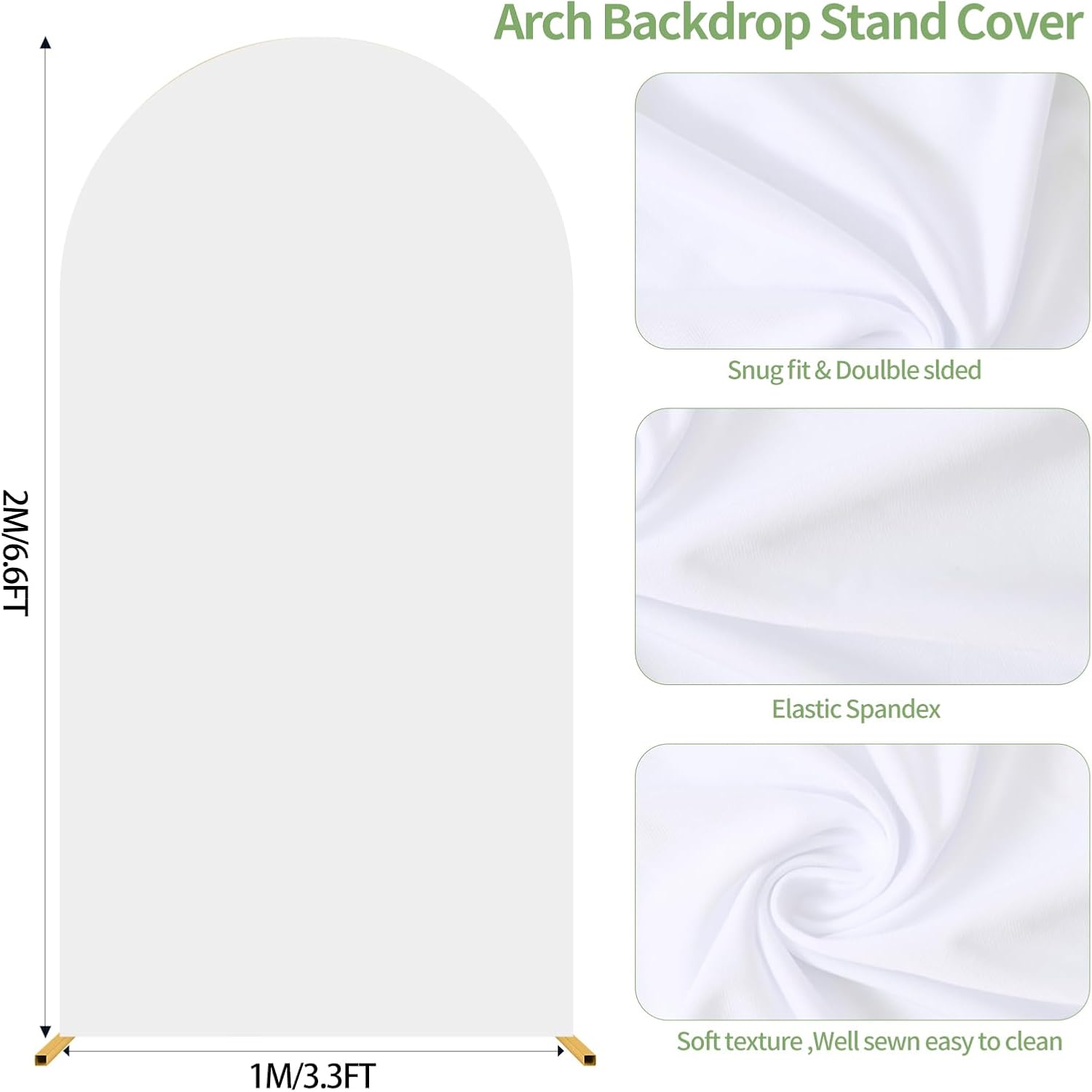 6.6FT Wedding Arch Cover Spandex Fitted Wedding Arch Stand Covers Round Top Chiara Arch Backdrop Cover for Birthday Party Ceremony Banquet Decoration White(Only Cover)