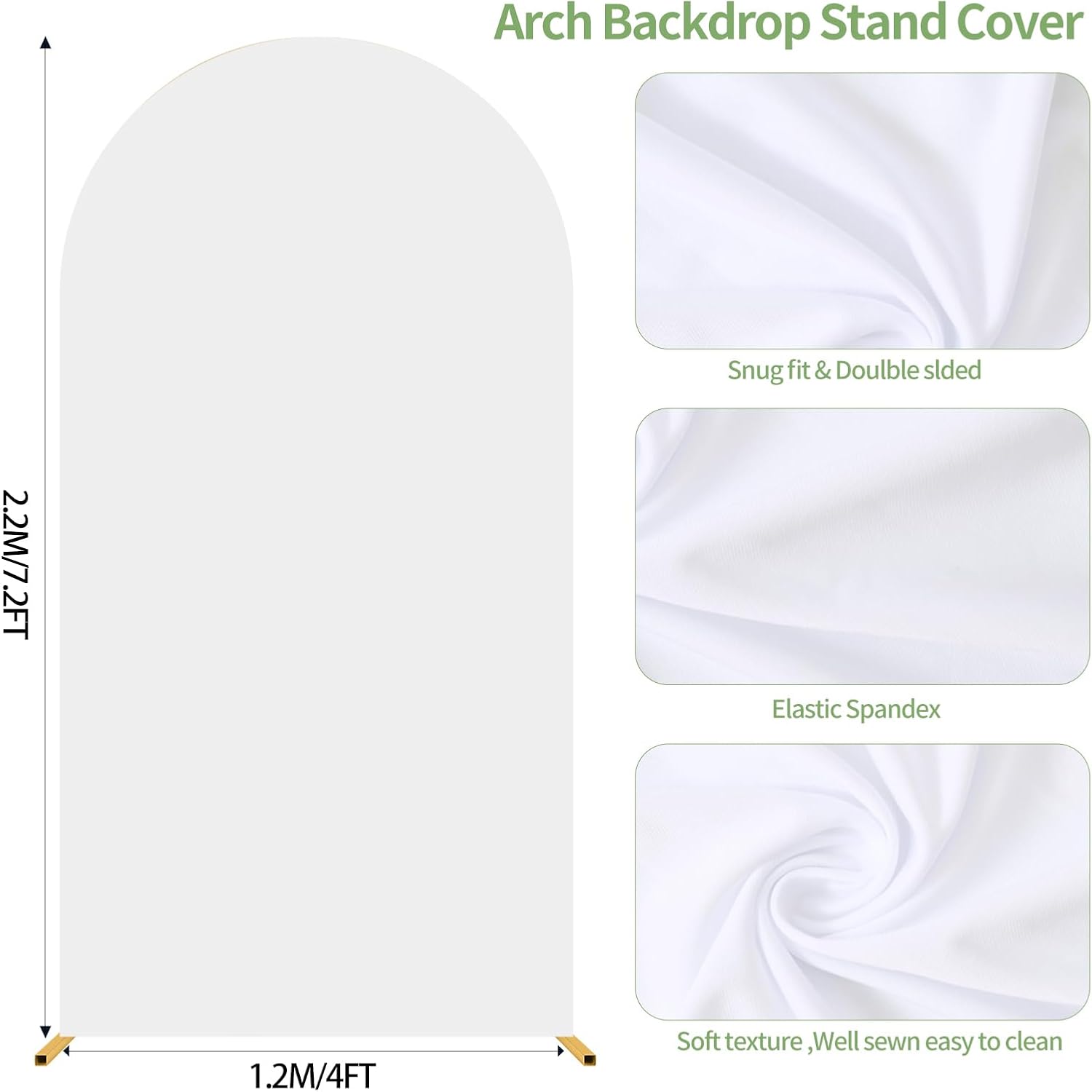 7.2FT Wedding Arch Cover Spandex Fitted Wedding Arch Stand Covers Round Top Chiara Arch Backdrop Cover for Birthday Party Ceremony Banquet Decoration White(Only Cover)