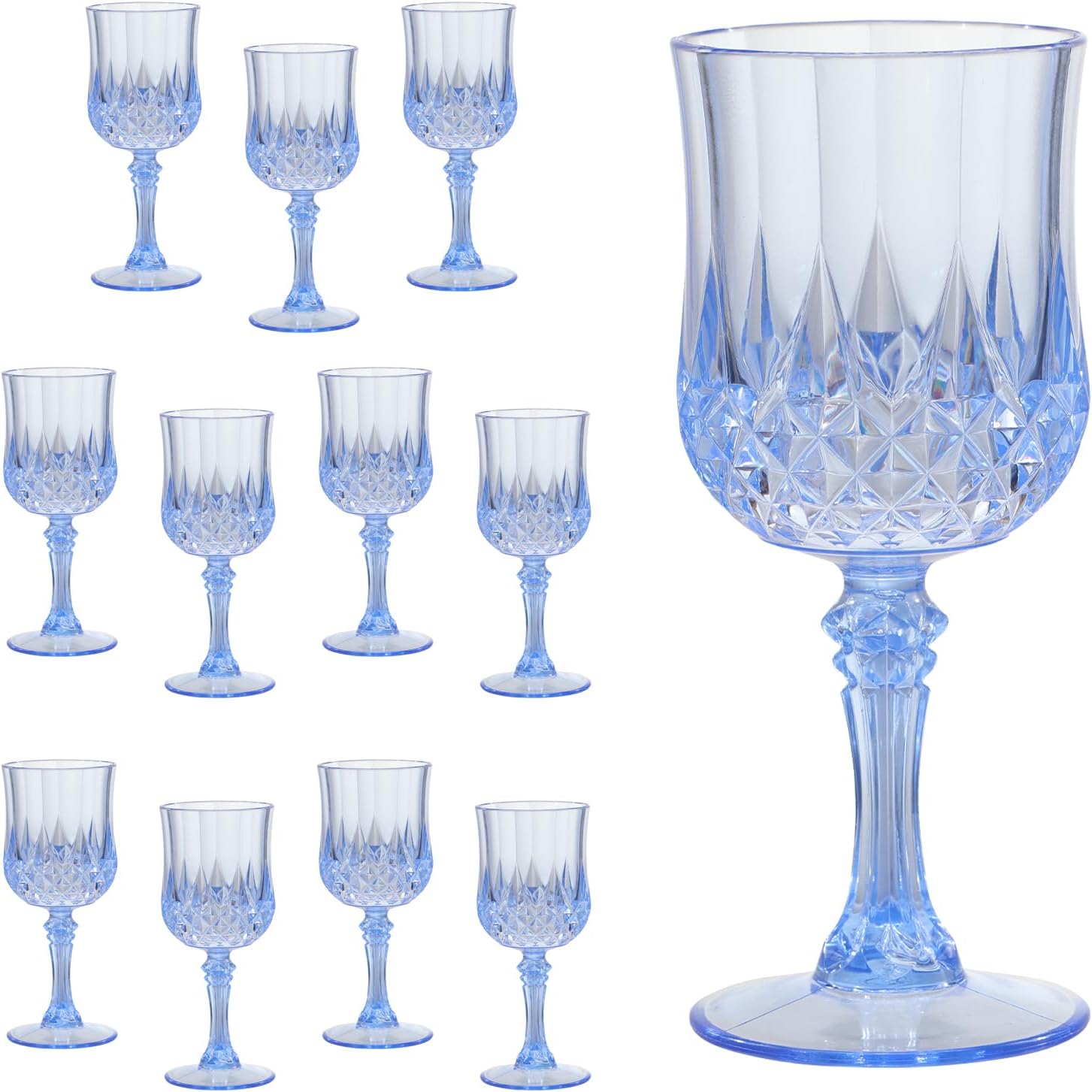 Blue Plastic Wine Glasses Set of 12 – 7oz Unbreakable Vintage Drinking Glasses for Parties Reusable & Dishwasher-Safe for Weddings, Bars, and Every Celebration