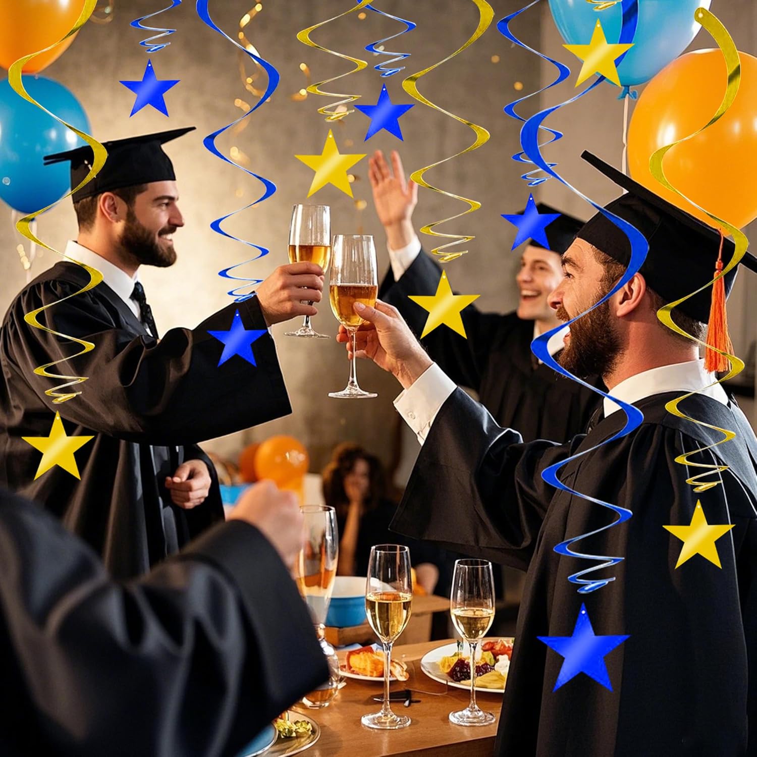 BEISHIDA Blue Gold Stars Hanging Swirls Graduation Hanging Ornament Decorations for Birthday Party Baby Shower Congrats Grade 2025 Graduation Decorations,Pack of 15