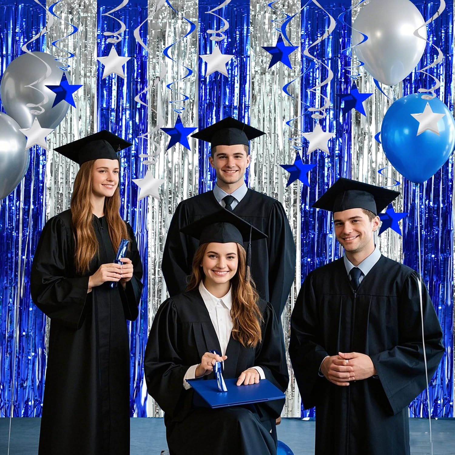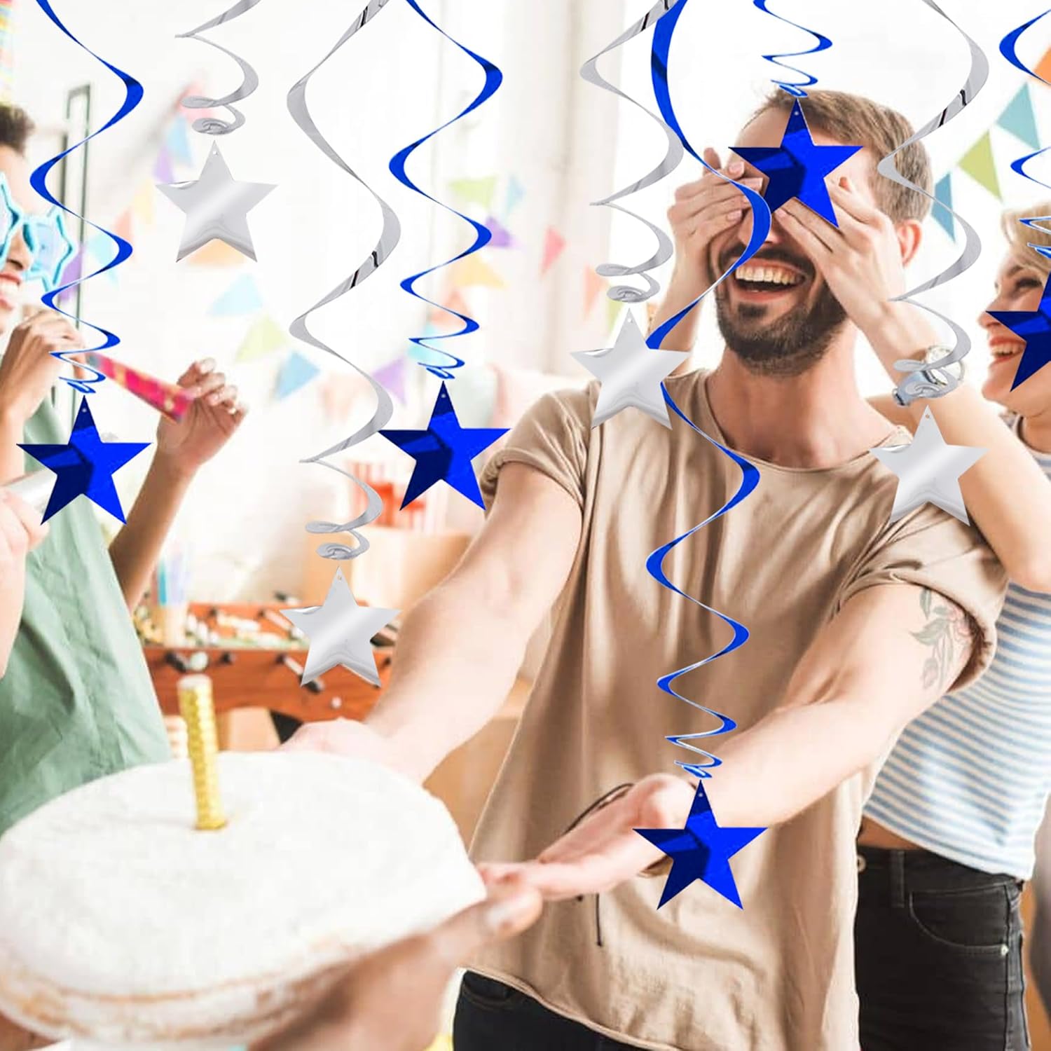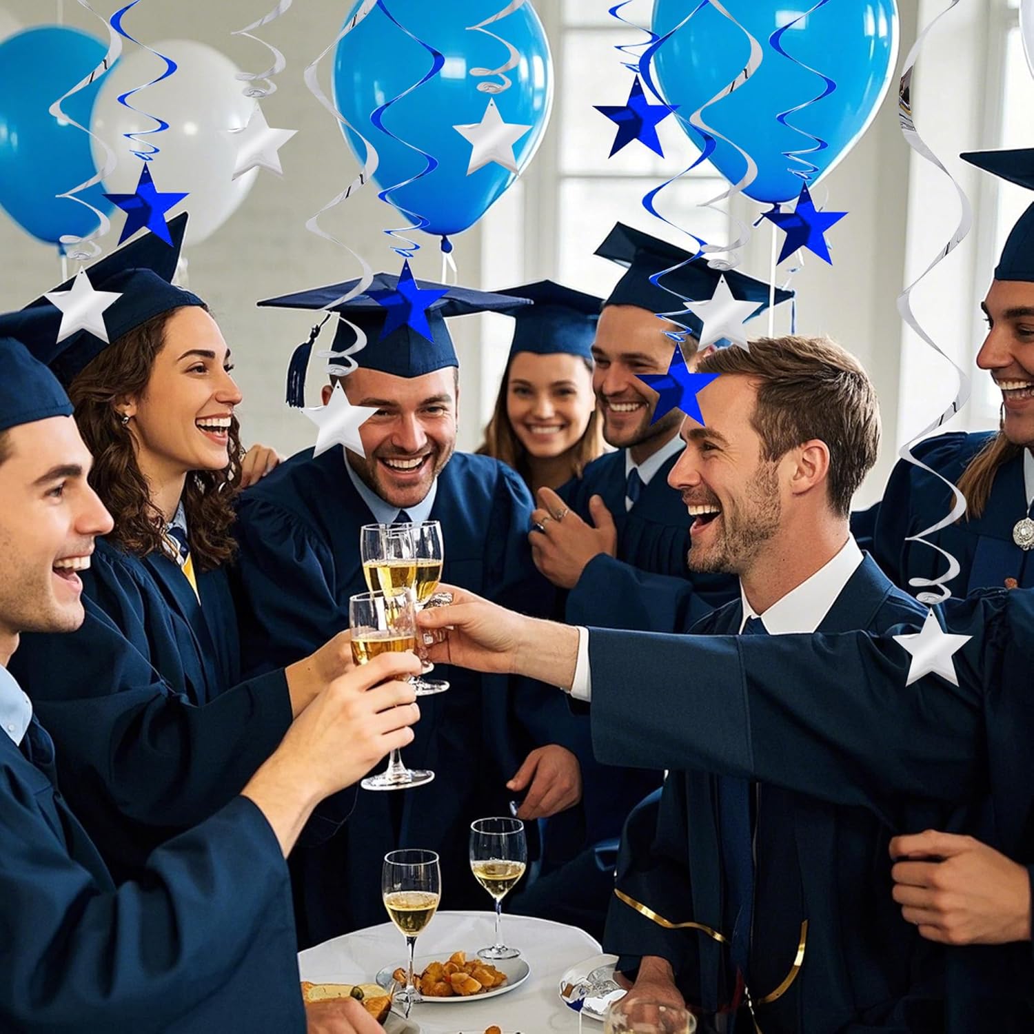 BEISHIDA Blue Silver Stars Hanging Swirls Bachelorette Graduation Hanging Ornament Decorations for Birthday Party Baby Shower Supplies Congrats Grade 2025 Graduation Decorations,Pack of 15