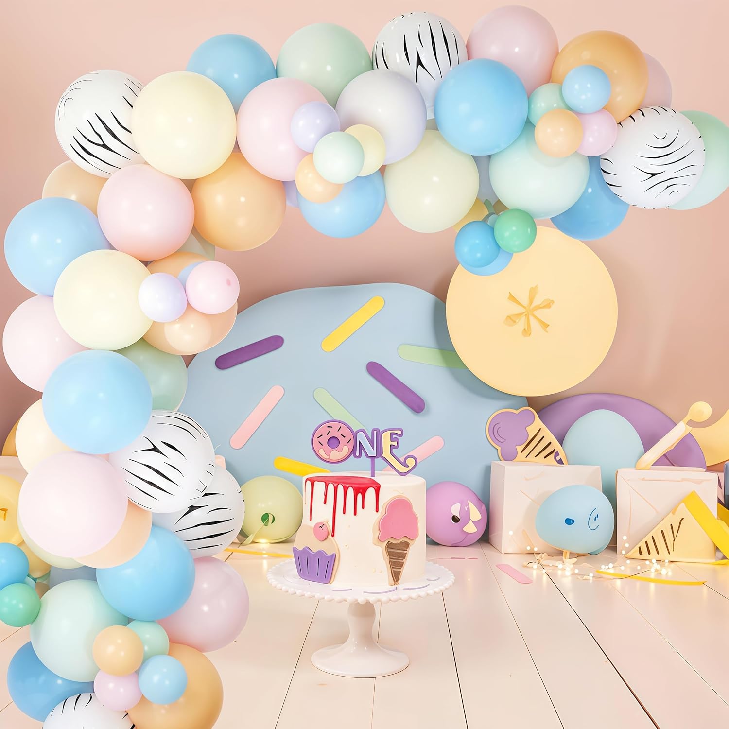 • What You Get - Pastel Rainbow and Zebra Balloon Garland Arch Kit, package including 8pcs 12 inches zebra printed balloons, 60pcs 10 inches balloons(macaron blue*10, macaron pink*10, macaron green*10, macaron orange*10, macaron yellow*10, macaron purple*10), 48pcs 5 inches balloons(macaron blue*8, macaron pink*8, macaron green*8, macaron orange*8, macaron yellow*8, macaron purple*8), 1 roll of 5 meters balloon strips, 1 roll of ribbon, 5pcs dot glues. Total 123 pcs, all in one package!