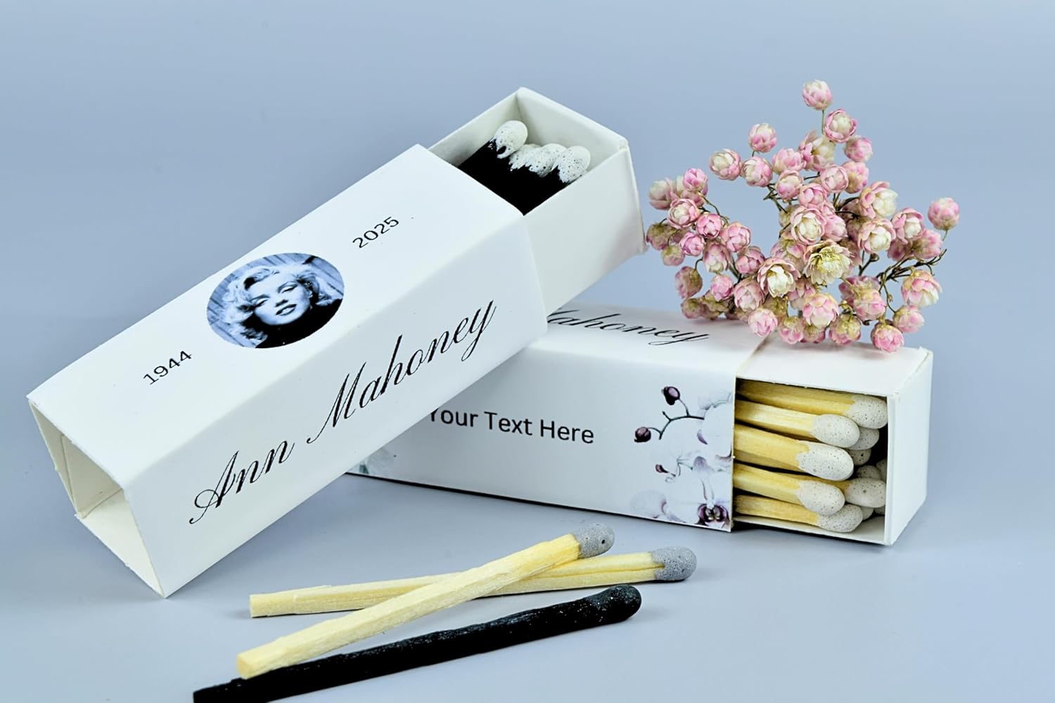 • Create a lasting and meaningful tribute with our Personalized Funeral Matchboxes—a respectful and customizable way to remember and honor those we’ve lost.