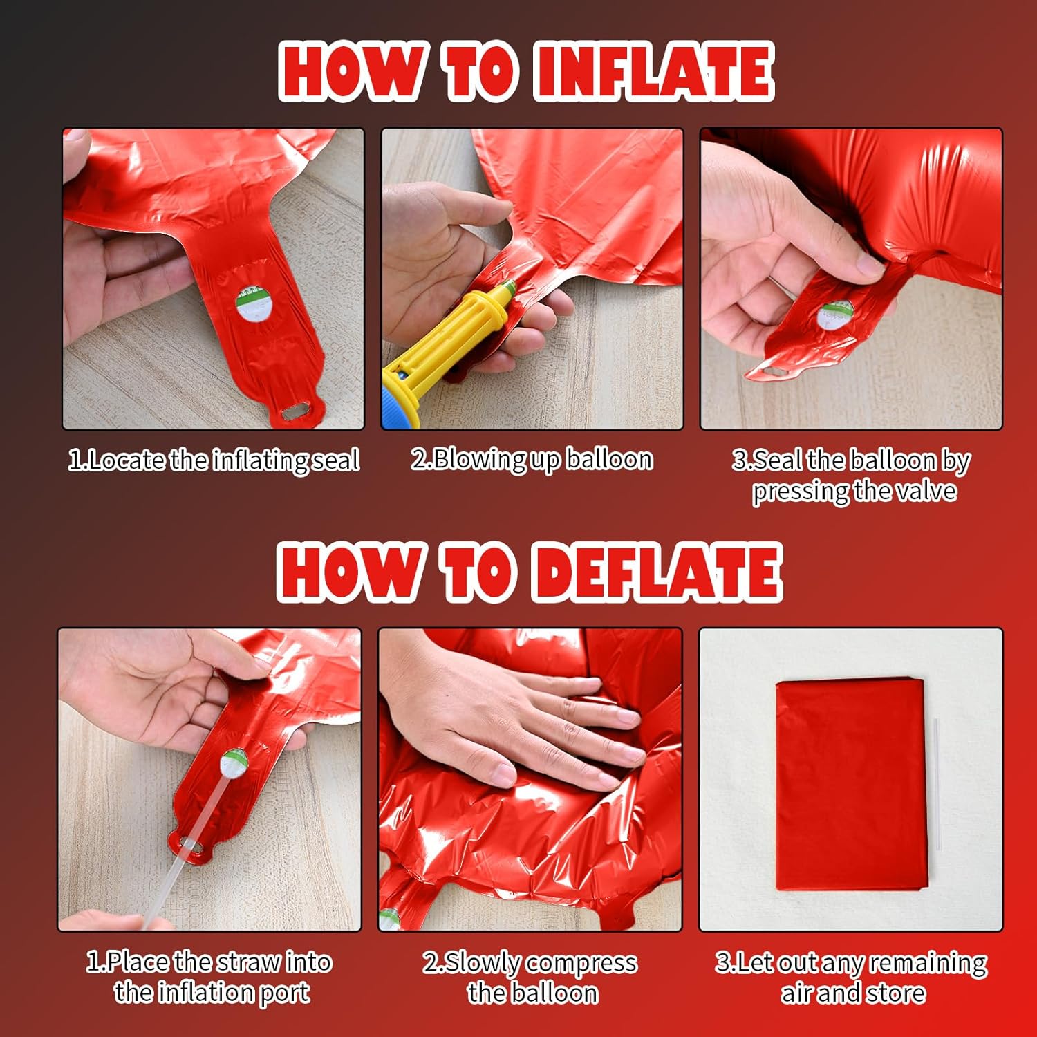 • Reusable Foil Balloons: The black red star balloon set is completely reusable. Avoid excessive friction and sharp objects when using it. Use a straw to deflate and flatten it after event, and it will still be a shining decoration at the party next time