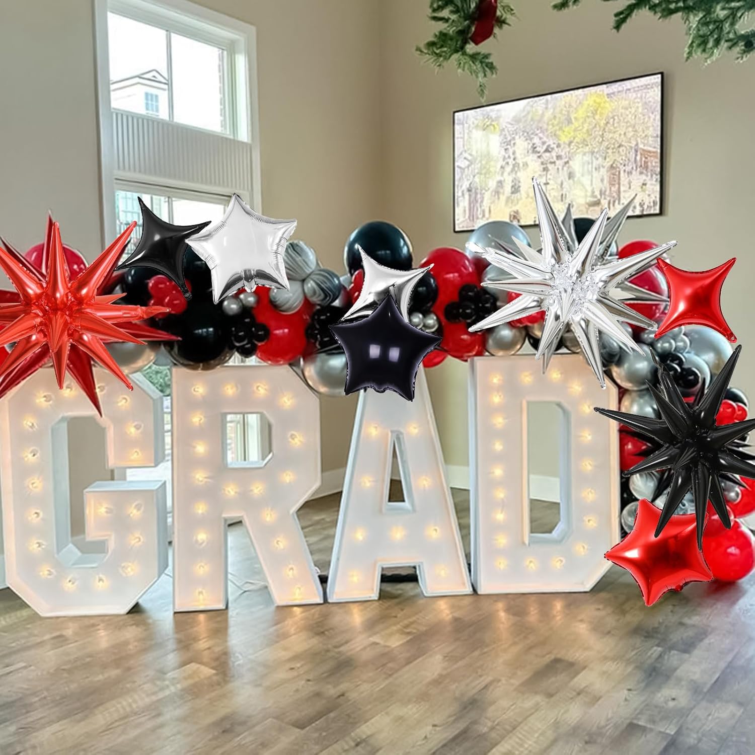 Star Balloons, 22in Red Black and Silver Star Balloons Foil 10in 4-Pointed & Pentagram Balloon for Graduation New Year Wedding Birthday Party Decorations