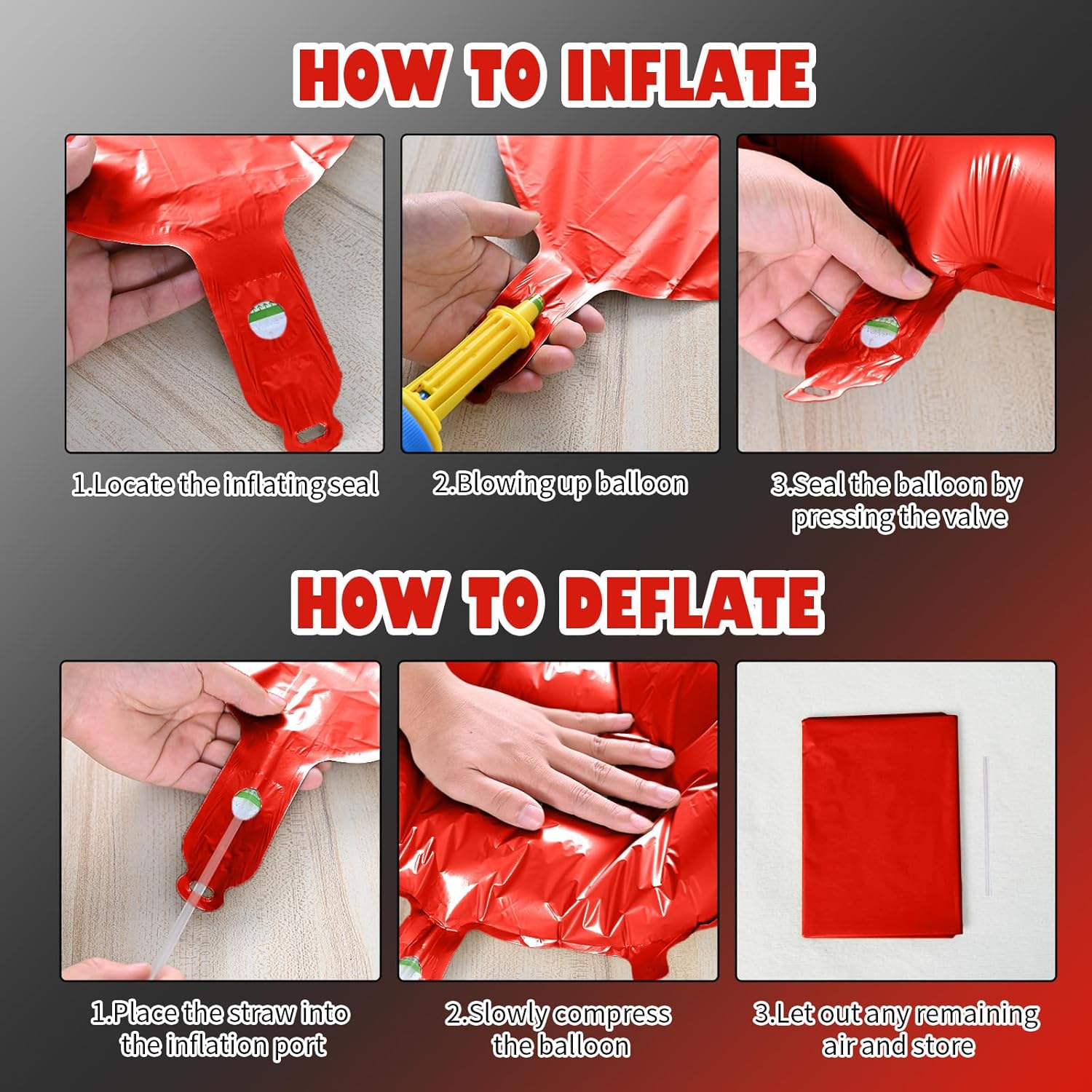 • Red Black Balloons Set: Package includes: red, black, silver three-color aluminum foil star balloons (explosion stars Γ— 3, four-pointed stars Γ— 6, five-pointed stars Γ— 6) , a straw and ribbon