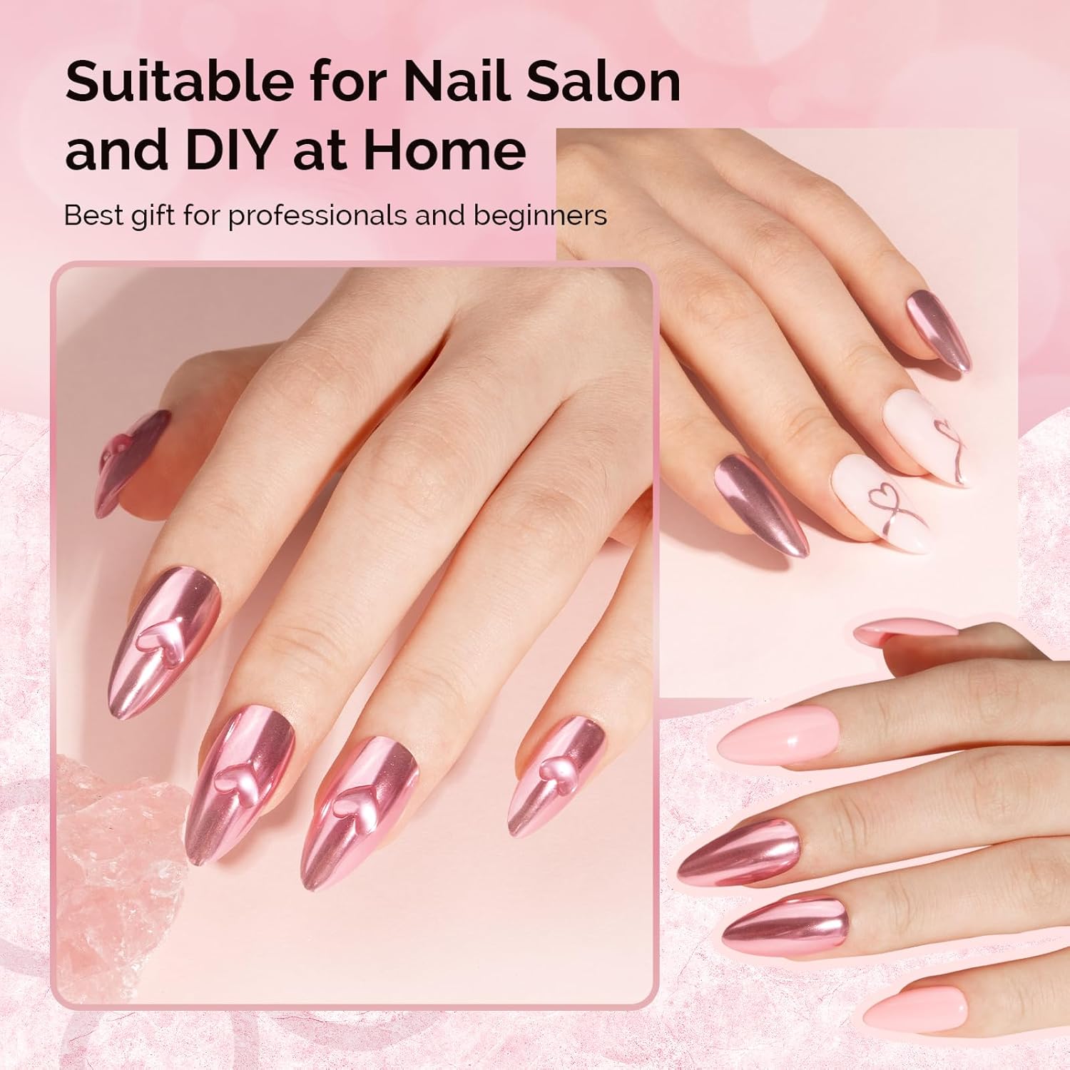MelodySusie Pink Chrome Nail Powder for Gel Nails,Metallic Mirror Effect Pigment Stylish Fine Glitter for Home DIY Salon Use