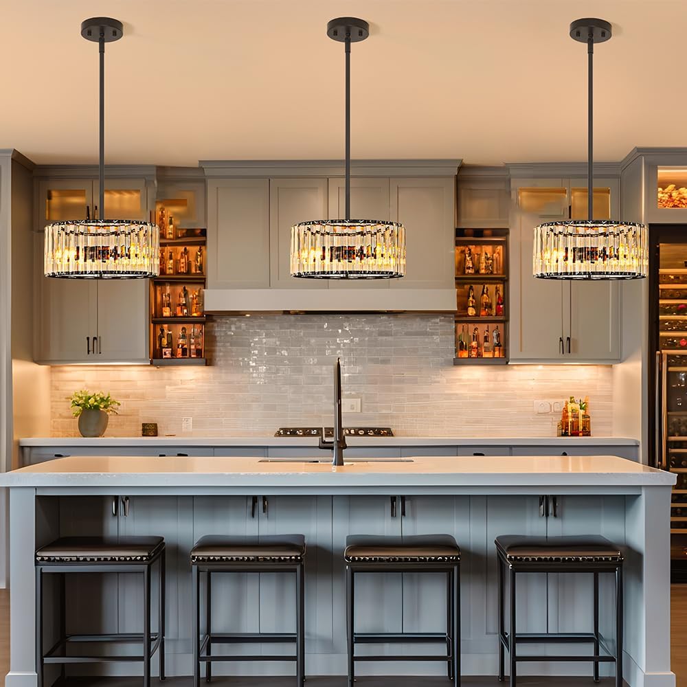 • Black Crystal Pendant Ligth: Lxybcce modern crystal dining room chandelier features a black metal frame adorned with clear crystals. The open-bottom design puts out plenty of light to illuminate your space and makes it easy to replace the light bulb