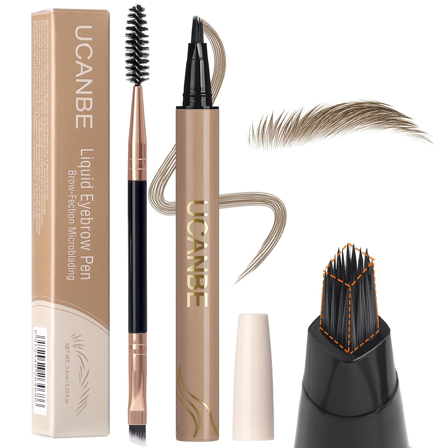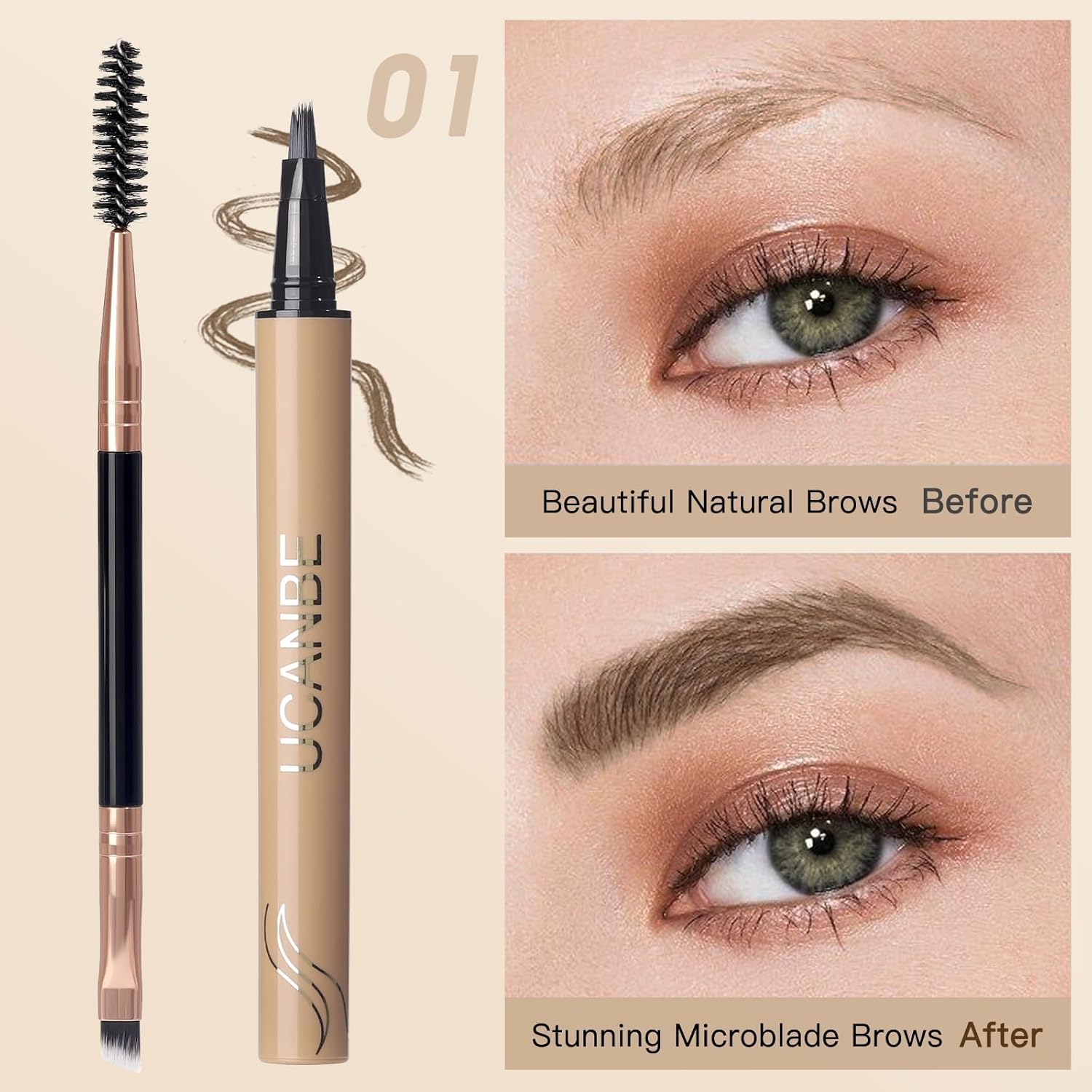 UCANBE Brow-Fection Angled Brush Eyebrow Pen, Liquid Microblading Eyebrow Pencils for Women, Wild Natural Brow Pen for Realistic Hair-Like Brows, Easy to Color, Waterproof, Lasts All Day, Brown