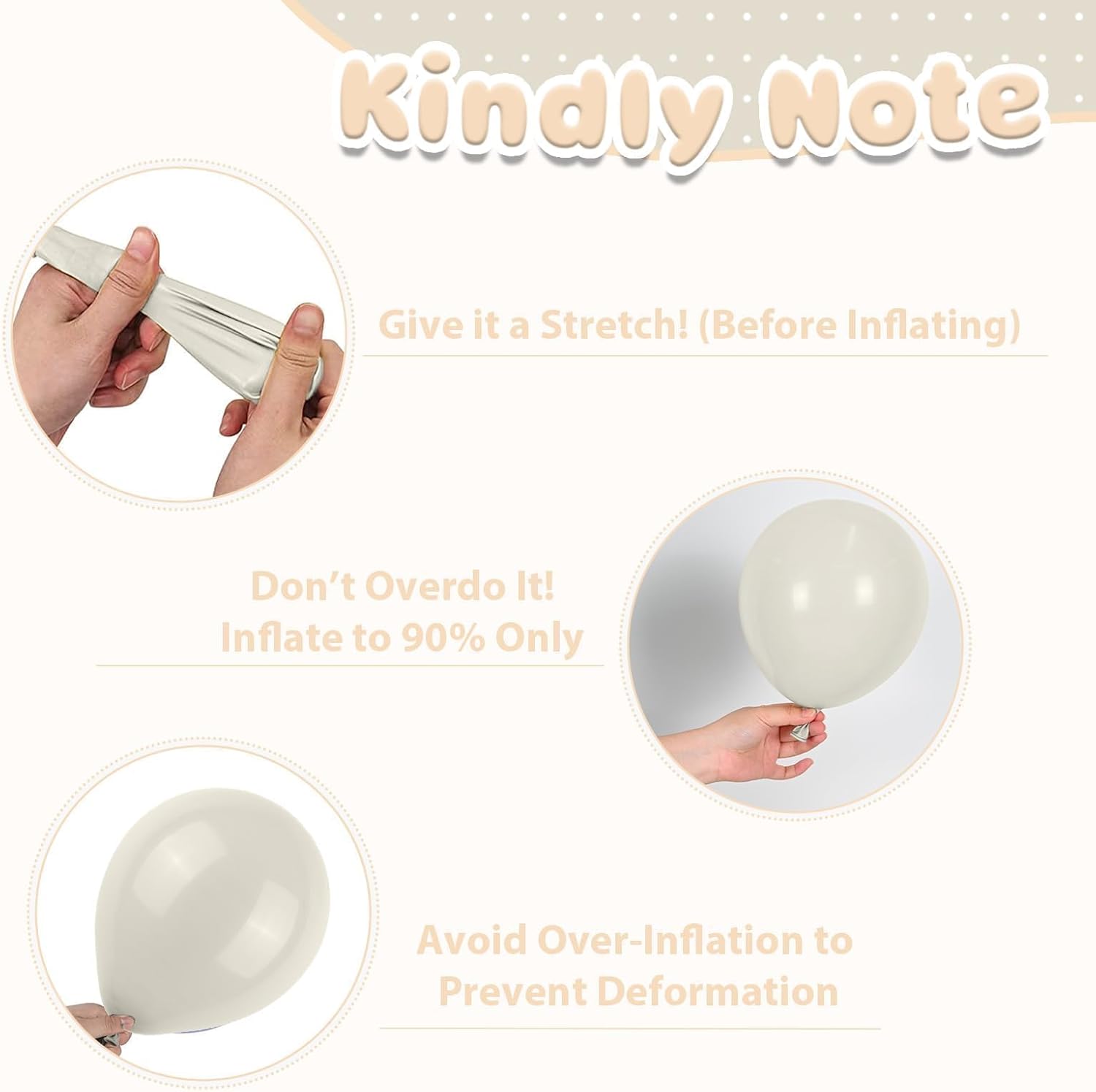 • Premium Quality Balloons: These sand white and white balloons are crafted from premium latex, offering excellent elasticity and durability. they can be filled with either helium or air, and when tied securely, they'll stay inflated for several days! With their vibrant colors, they are the ideal choice for adding a fun, colorful touch to any party or event.