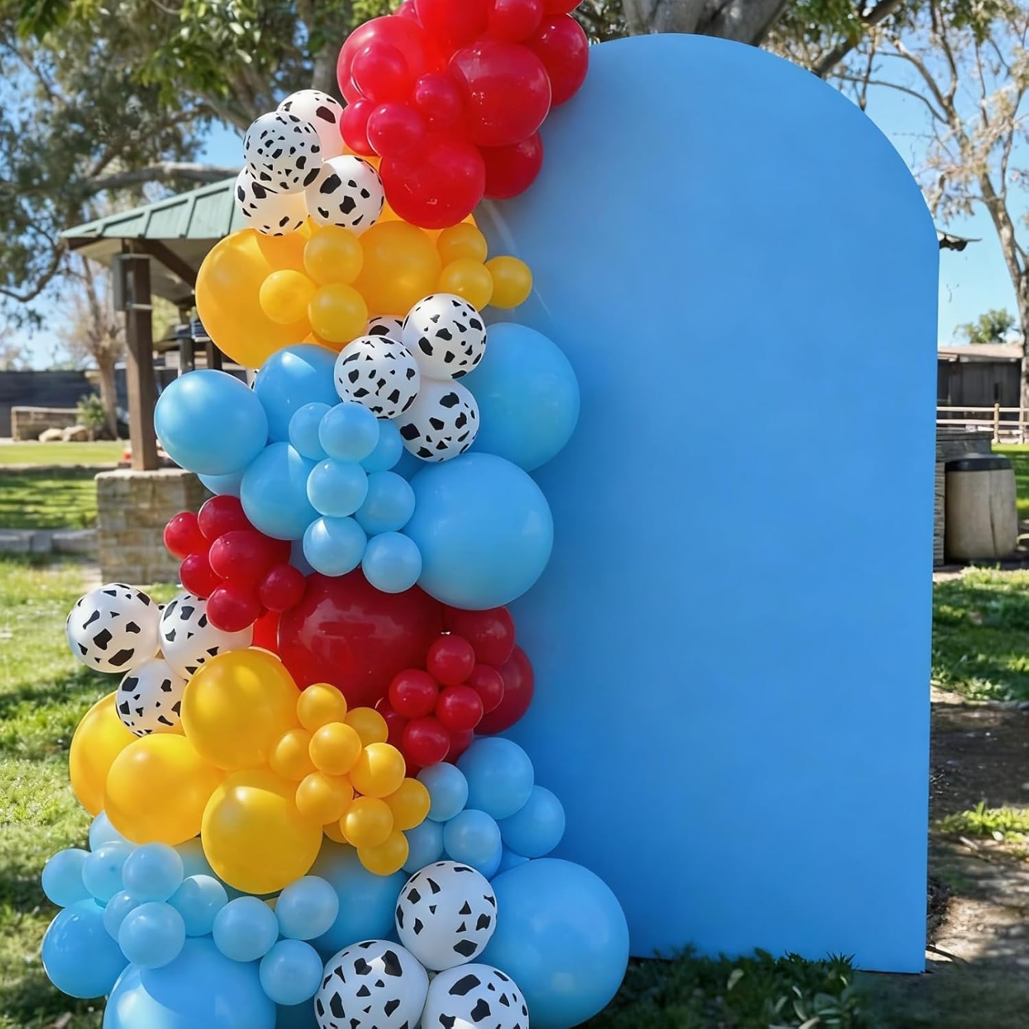 • 12 Inch Colorful Balloon Set: 10 red balloons, 10 x light blue balloons, 10 x yellow balloons, 10 x light green balloons, 5 x cow print balloons, 5 x blue background white cloud balloons, and 1 x light blue ribbon. This Interesting cow ,cloud prints and colorful colors will embellish a fun and playful atmosphere at your party.