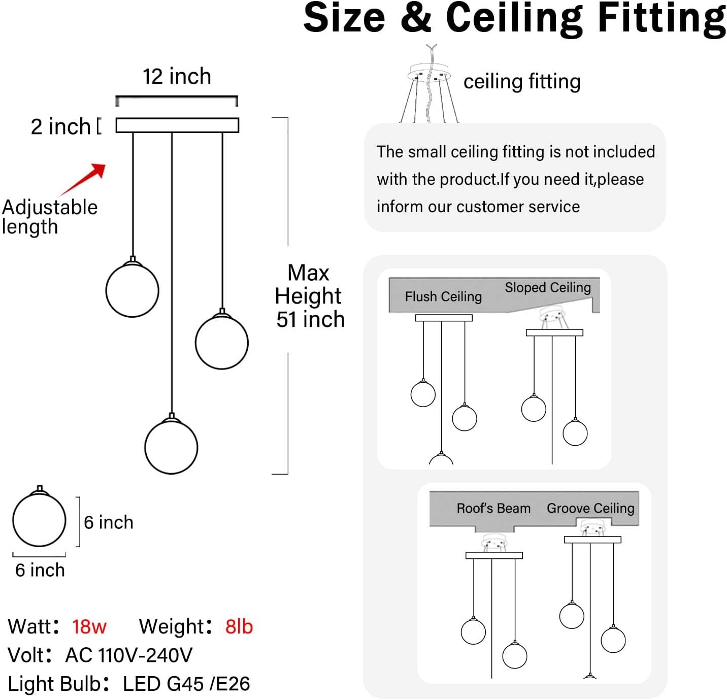 • 【Modern LED Pendant Lighting Installation】Please carefully read the size drawing and choose the suitable size for your home. The installation is simple. After installing the top panel on the ceiling, install the glass. Please let us know if you have any questions