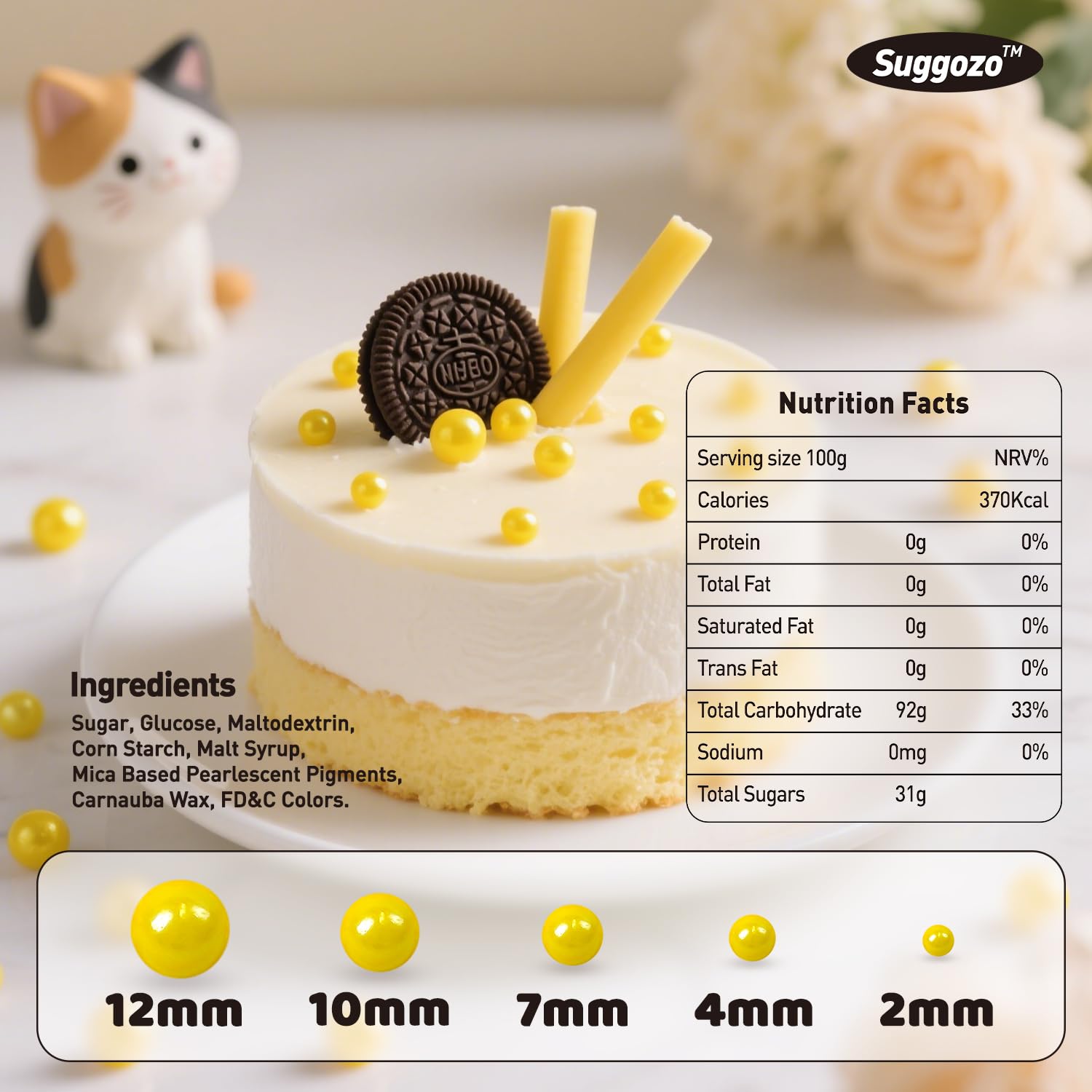 • Safe & Certified Pearls: Food-grade yellow pearls sugar sprinkles made with non-GMO ingredients, 0% preservatives. Kosher/Halal-certified in facilities with no allergens (soy/nut/dairy). Tamper-proof sealed for safety.