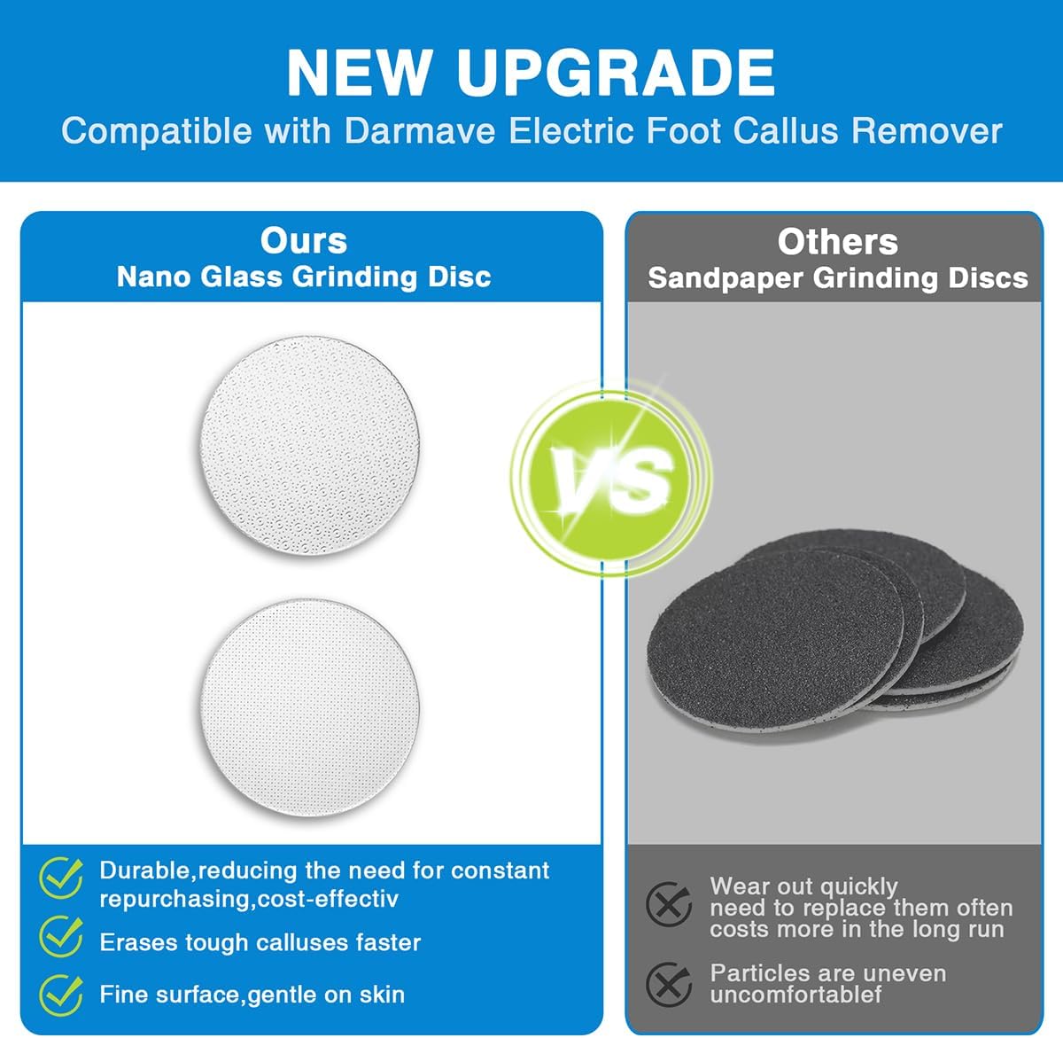 • Nano Glass Grinding Disc Set: 2 Nano Glass Discs & 60 Adhesive Pads Includes two nano glass discs (Coarse for tough calluses, Fine for smooth finishing) and 60 double-sided adhesive pads for easy replacement and consistent results