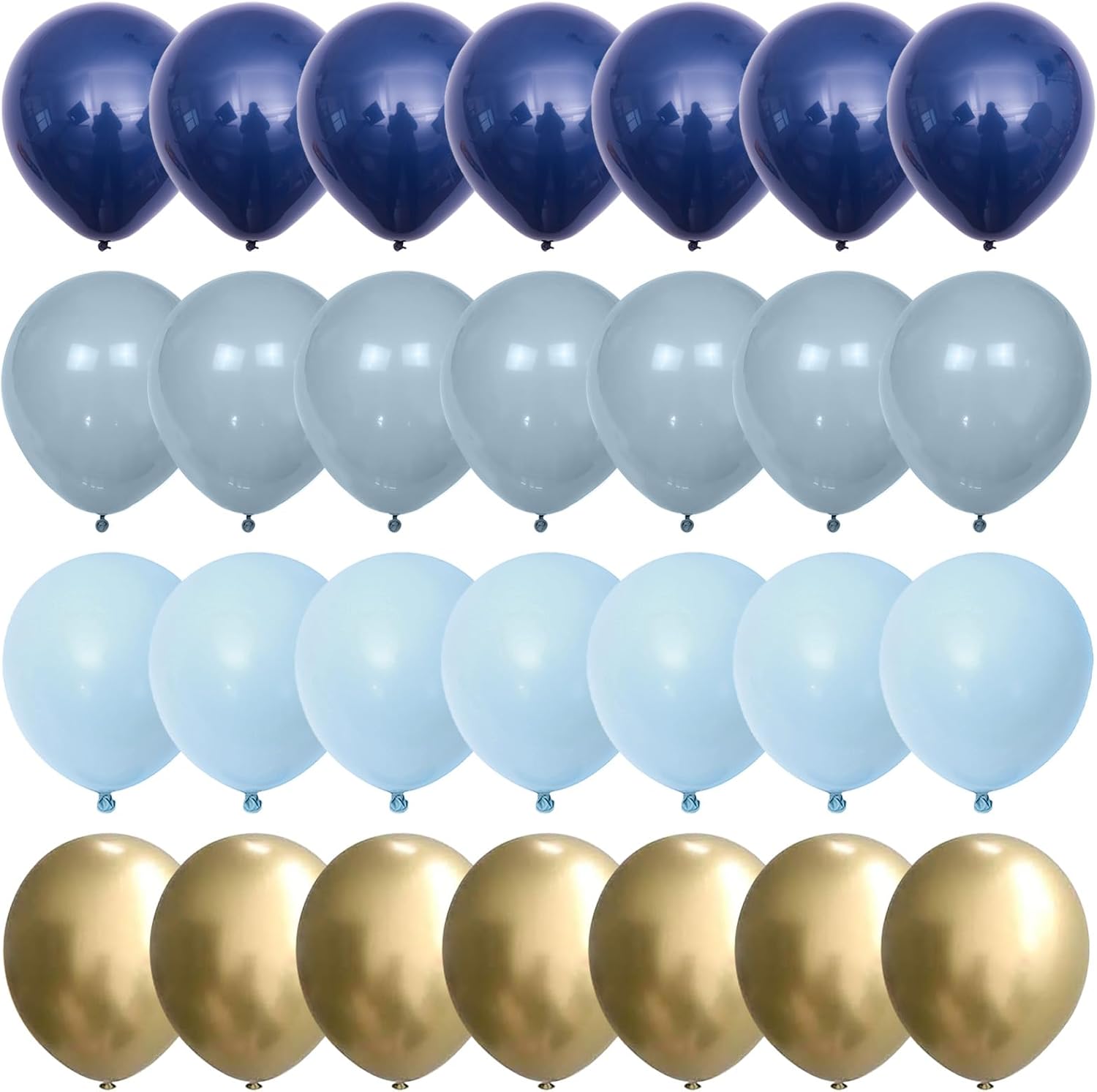 Navy Blue Gold Balloons, 12 Inch Dusty Light Blue Golden Latex Balloon Set for Boys Birthday Winter Wonderland Wedding Baby Shower Party Decorations