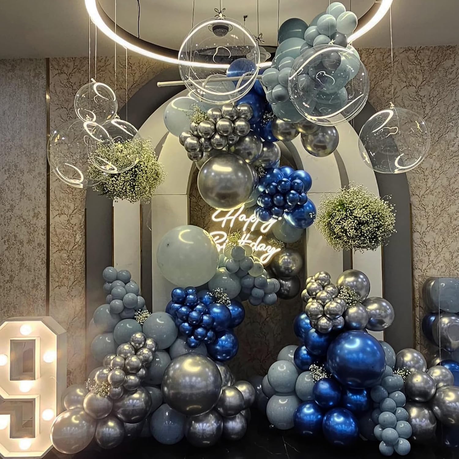 • Versatile Usage: These retro blue gold latex ballons are suitable for all kinds of parties. Whether it's a graduation party, milestone birthday party, New Year's Eve party, wedding, engagement party, space-themed party, or baby shower, these elegant muted tones will enhance your themed celebration