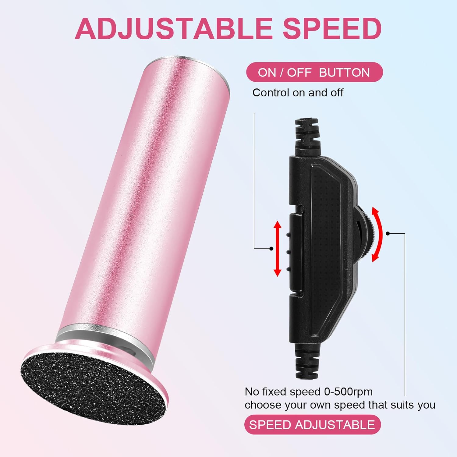 • ADJUSTABLE SPEED: Are you still using traditional electric feet callus remover with only 3 or 2 speeds? Our electric foot file sander has unlimited speeds, and you can adjust the speed within the speed range (0-500rpm) to suit yourself, removing dead skin from the heel more gently and smoothly.