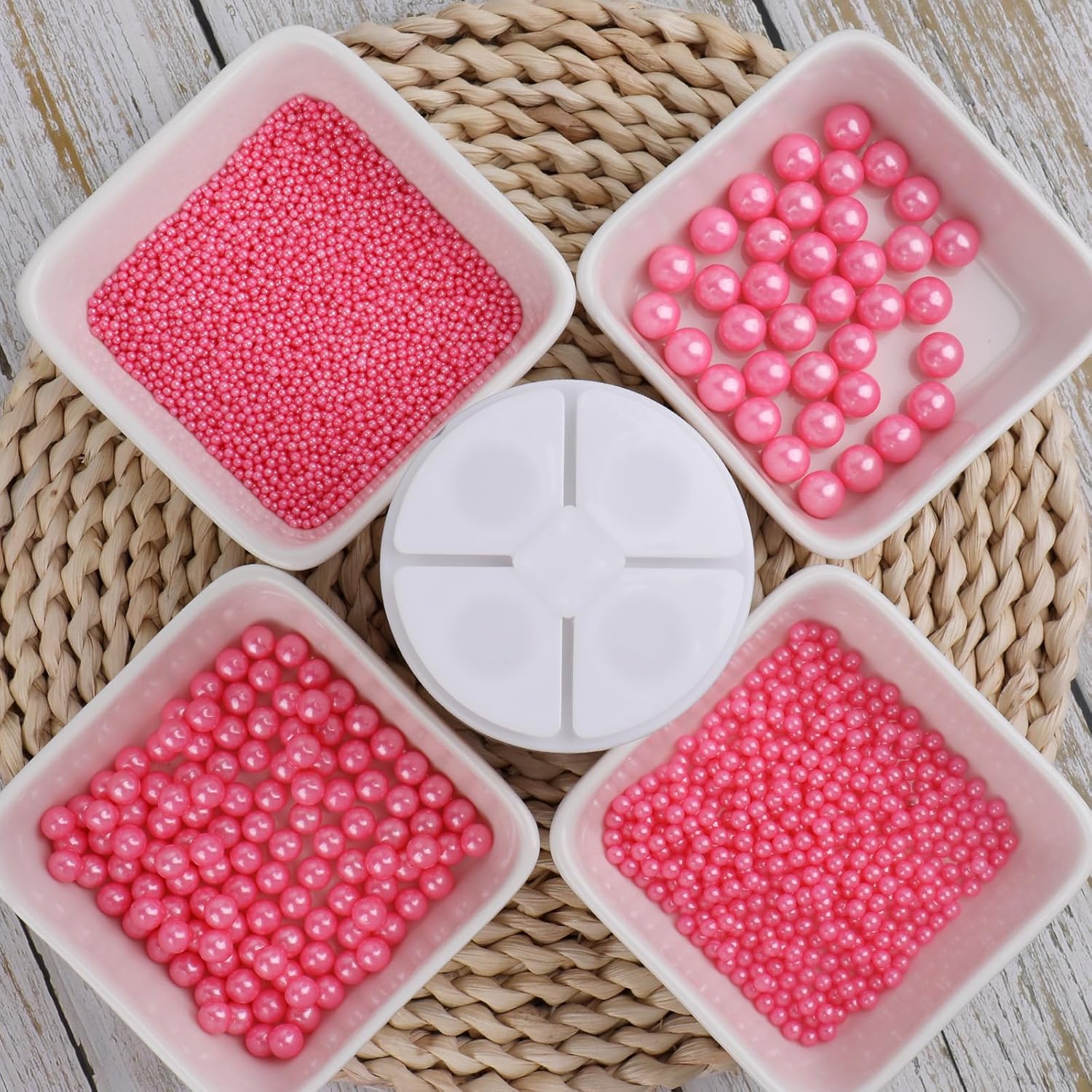• Vibrant Pink Sprinkles: Six sizes of pink sugar pearls add a fun and charming touch to any dessert