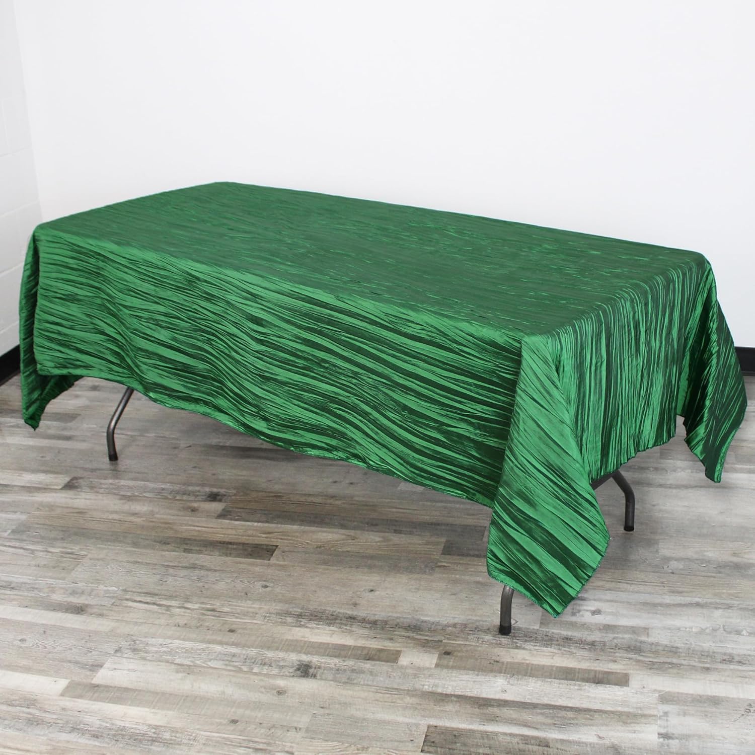 YOUR CHAIR COVERS - 60 x 102 inch Rectangular Crinkle Taffeta Tablecloth - Hunter Green, Rectangle Table Linens for 6 ft Rectangular Tables, Wedding Crushed Table Cloth
