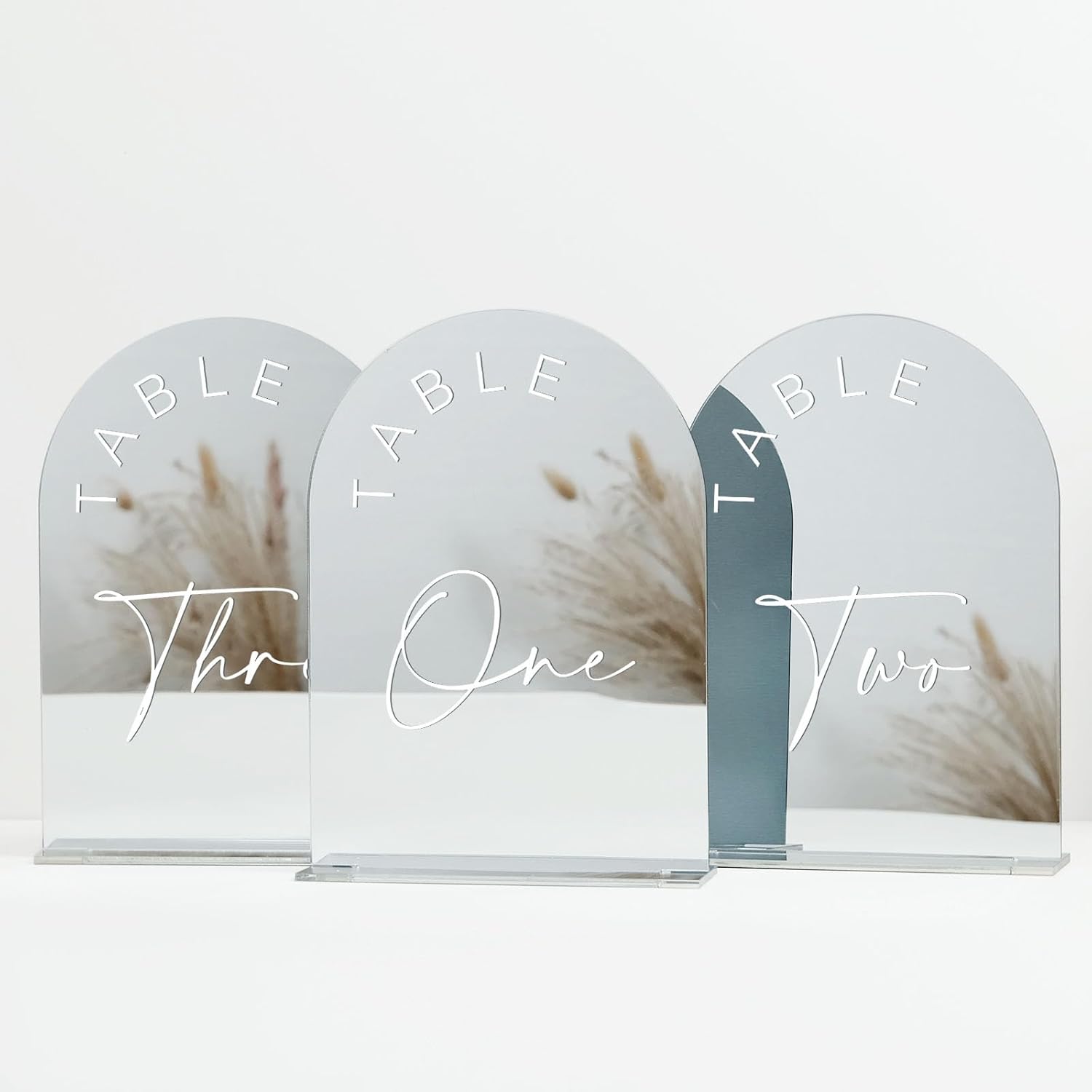 • PREMIUM QUALITY: These sliver arch acrylic table numbers with stands are made from high quality sliver acrylic panels and then printed with white font in a simple arch design that won't go out of style and will last a long time.