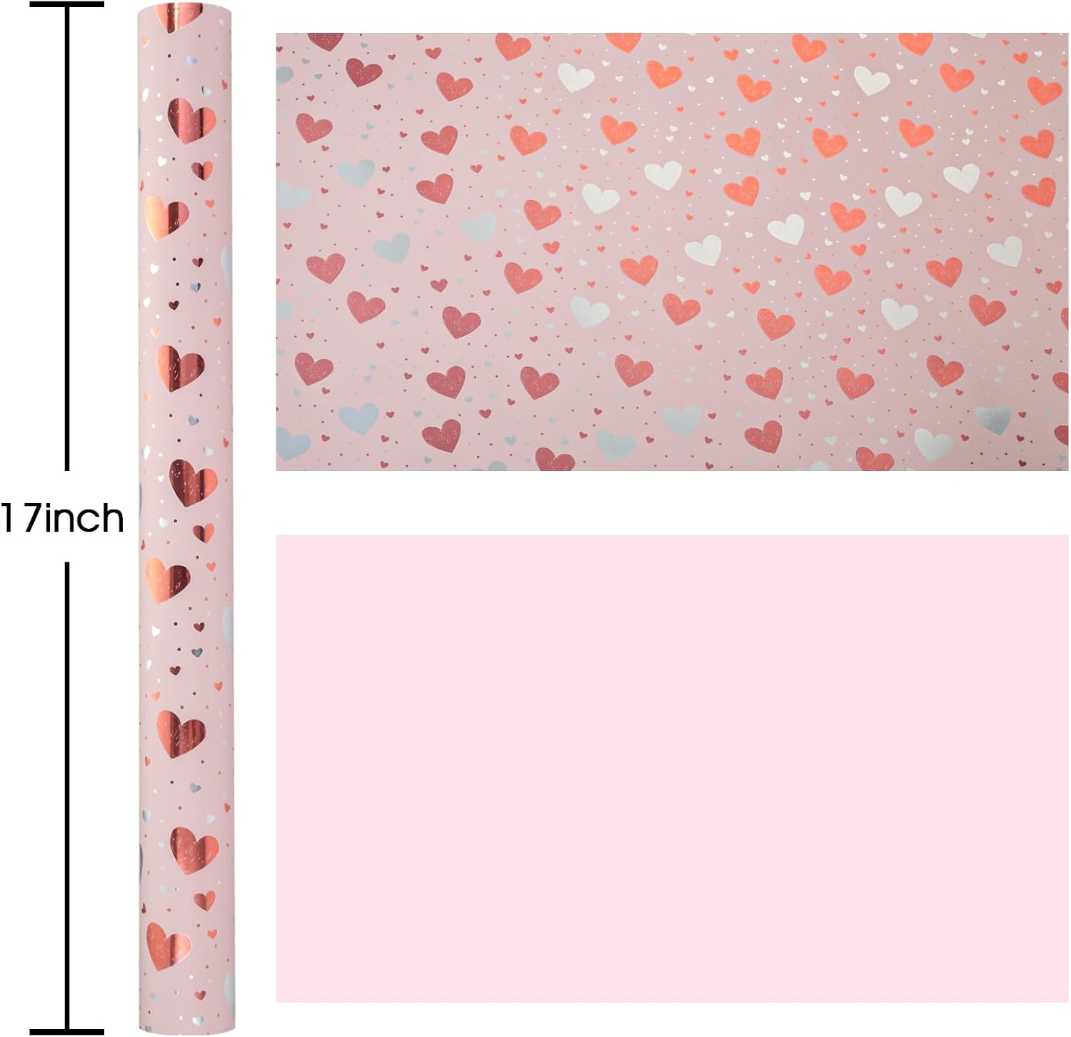 • Double-Sided Wrapping Paper: One side features gold and silver hearts, while the other is solid pink, making your gift wrap unique and eye-catching